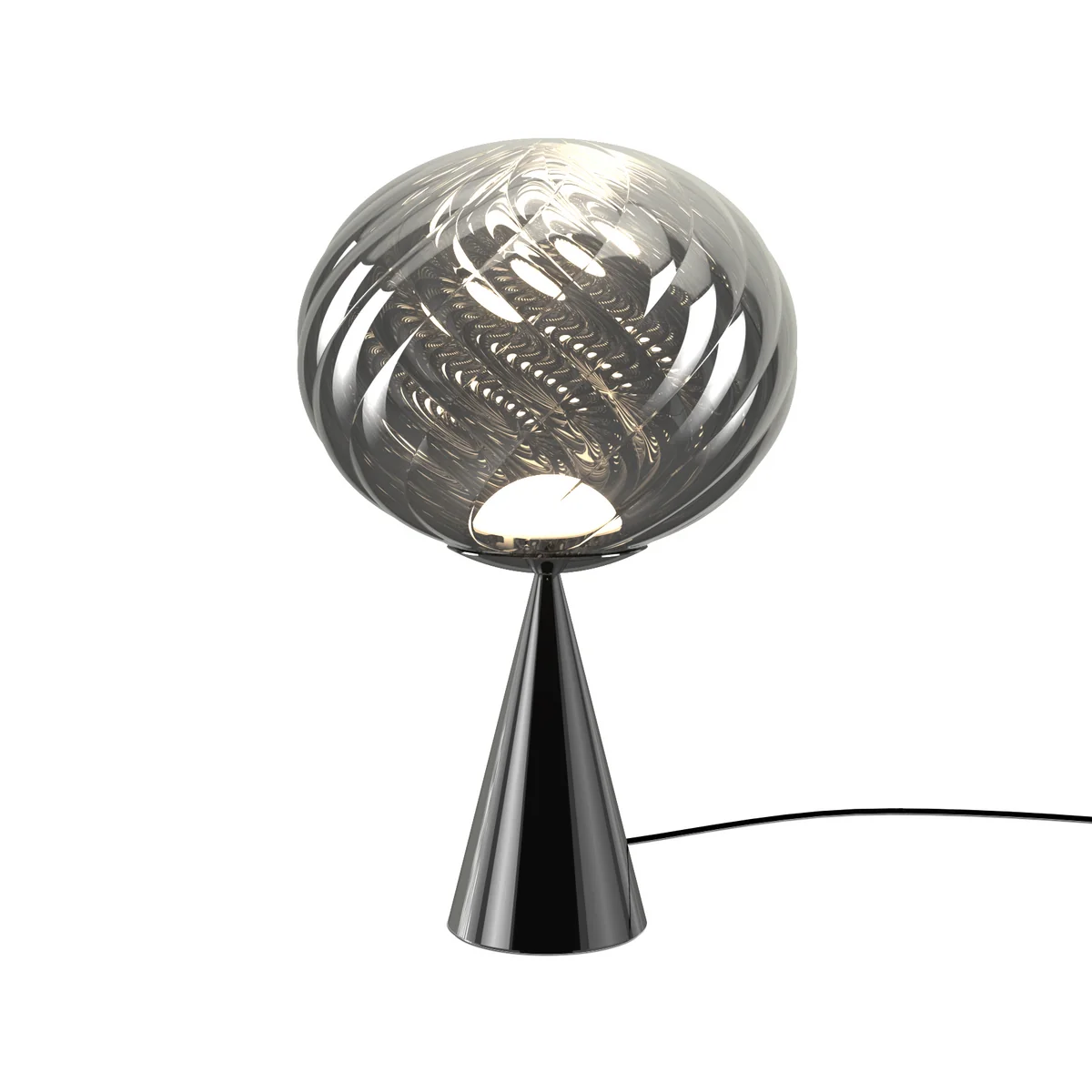 Die Whirl Cone Fat Tischleuchte von Tom Dixon verbindet künstlerische Formensprache mit technischer Raffinesse. Ihr markanter, konischer Sockel und der organisch geschwungene Reflektor formen ein skulpturales Objekt, das sowohl leuchtet als auch fasziniert. Das Licht wird weich gestreut und betont die handwerkliche Qualität und Materialtiefe, die typisch für Tom Dixons Designs ist. Ausdrucksstarkes Designobjekt für Tisch, Sideboard oder Nachttisch.