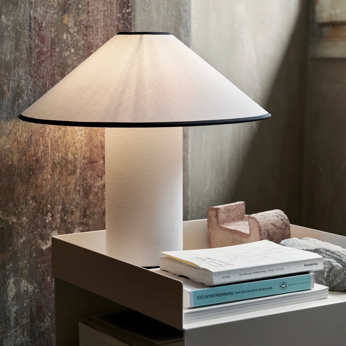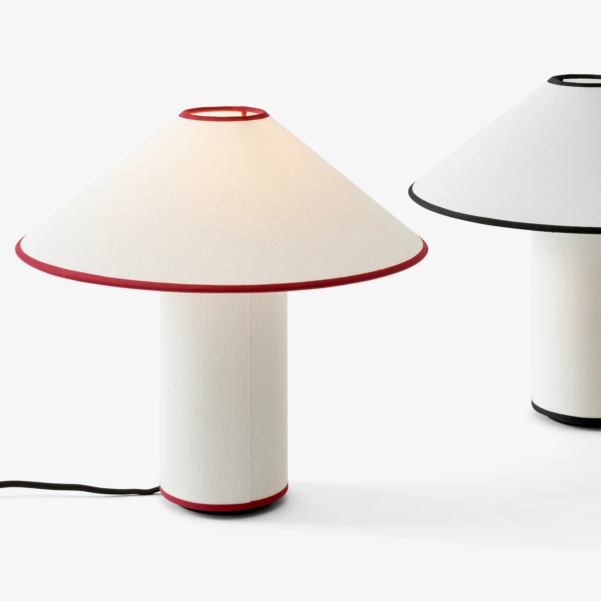 Die Colette ATD6 Tischleuchte aus dem Hause &Tradition begeistert mit ihrer avantgardistischen Ästhetik. Die Leuchte wurde nach der berühmten französischen Autorin "Colette" benannt. Sie verfügt über einen taktilen Schirm, sowie Sockel und lässt sich ganz simpel nach Bedarf dimmen. Schirm und Sockel sind mit einer Mischung aus Baumwolle und Leinen überzogen. Der Schirm verfügt über eine Kunststoffschicht (PVC) auf der Rückseite des Stoffes. Die innere Struktur wird aus Eisen und Aluminium gefertigt. Die gesamte Colette Leuchte ist mit einer dekorativen Zierleiste versehen.