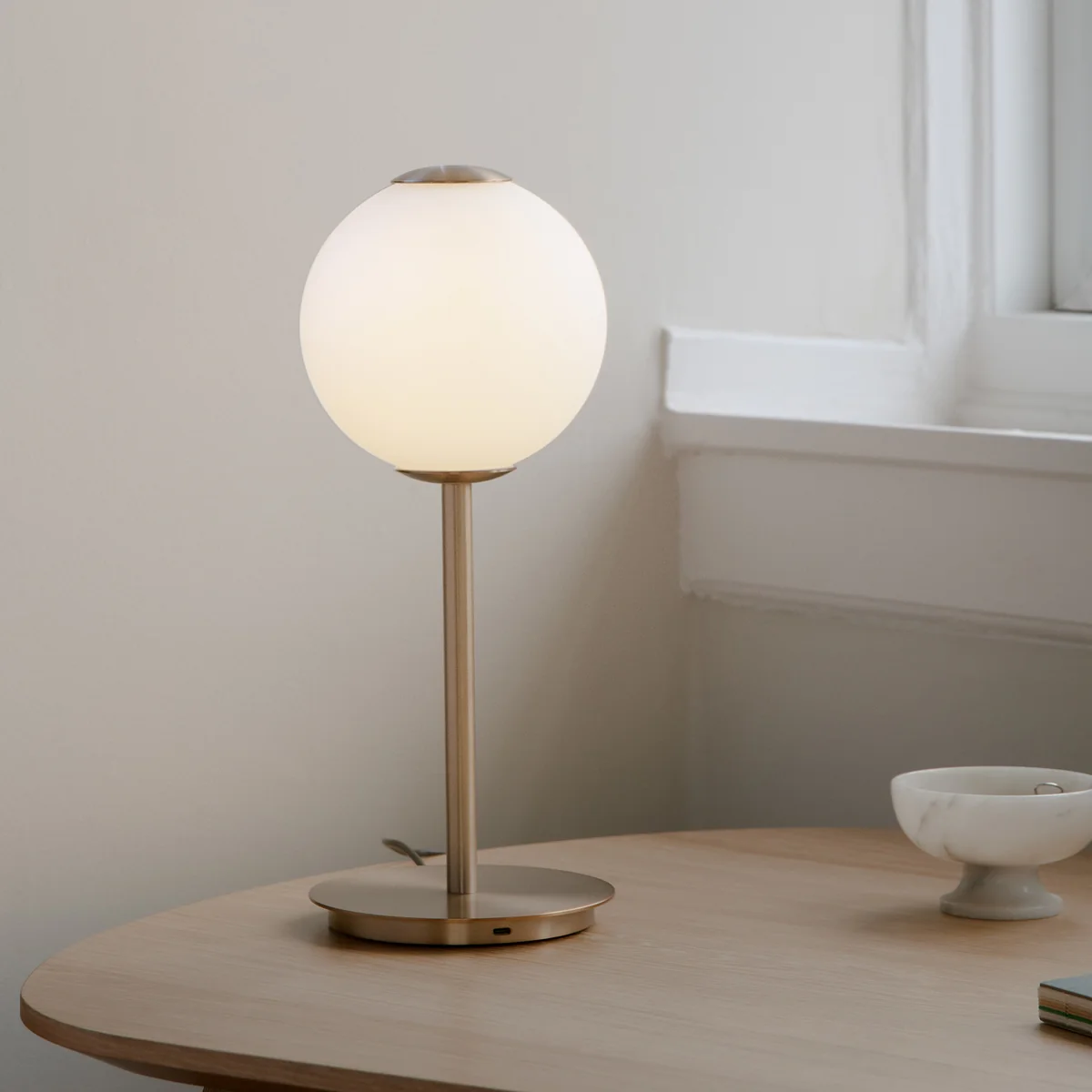 LED-Tischleuchte aus Messing und Opalglas