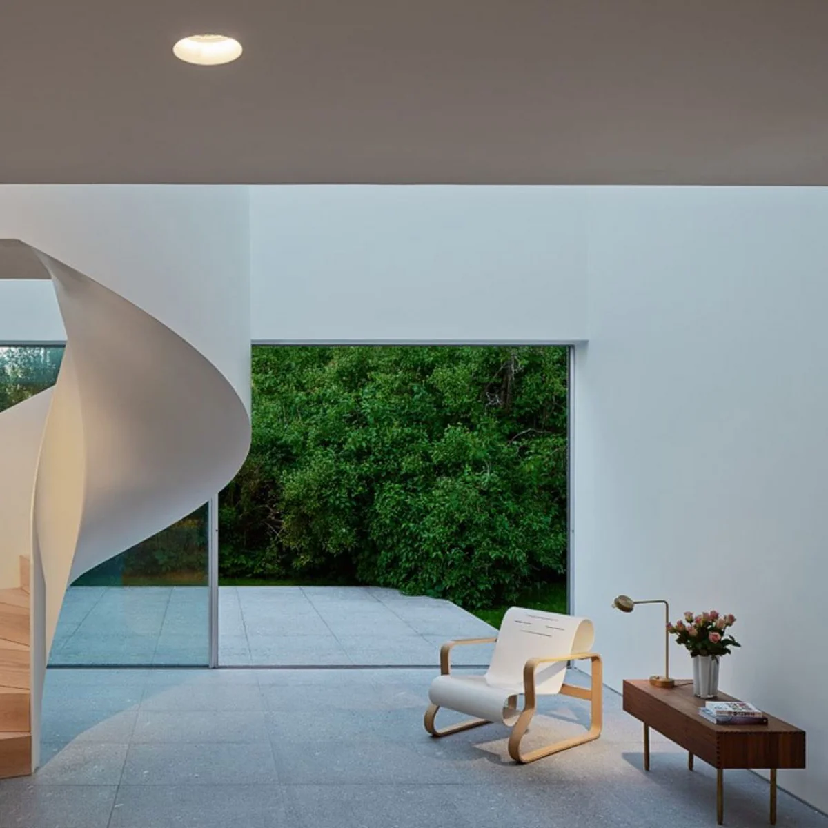 Ziel des Entwurfs war es eine schlichte Form mit klarer Unterscheidung zwischen den einzelnen Elementen zu schaffen. Geprägt ist das Design von weichen, runden Konturen, die sich sowohl in der Basis und im Leuchtkopf, als auch in dem einfach gebogenem Arm wiederfinden.