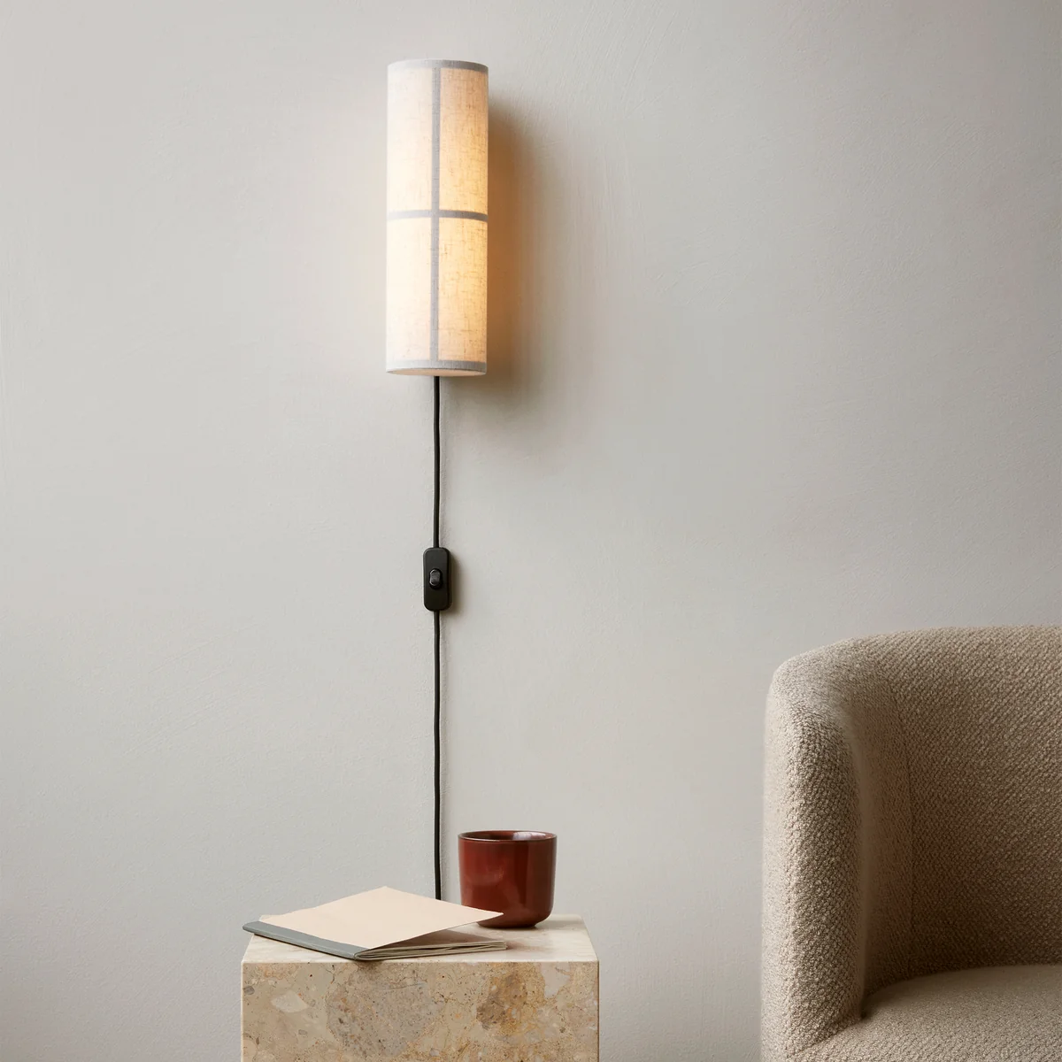 Die Hashira LED Wandleuchte von Audo ist die moderne Interpretation einer traditionellen japanischen Reispapierlaterne des Designduos Norm Architects, Kasper Rønn und Jonas Bjerre-Poulsen.