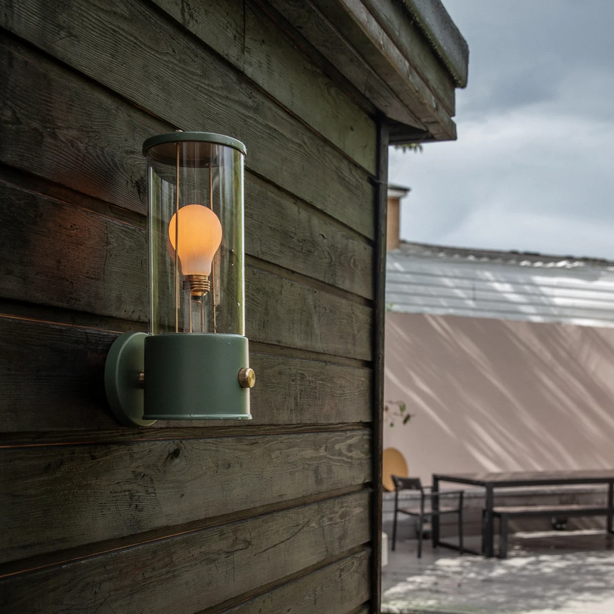 Wandleuchte mit sichtbarer Glühbirne