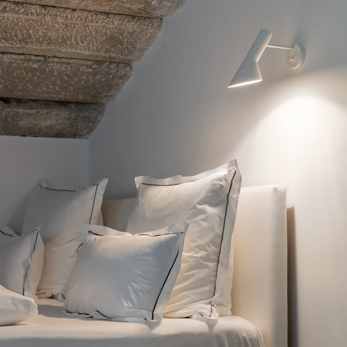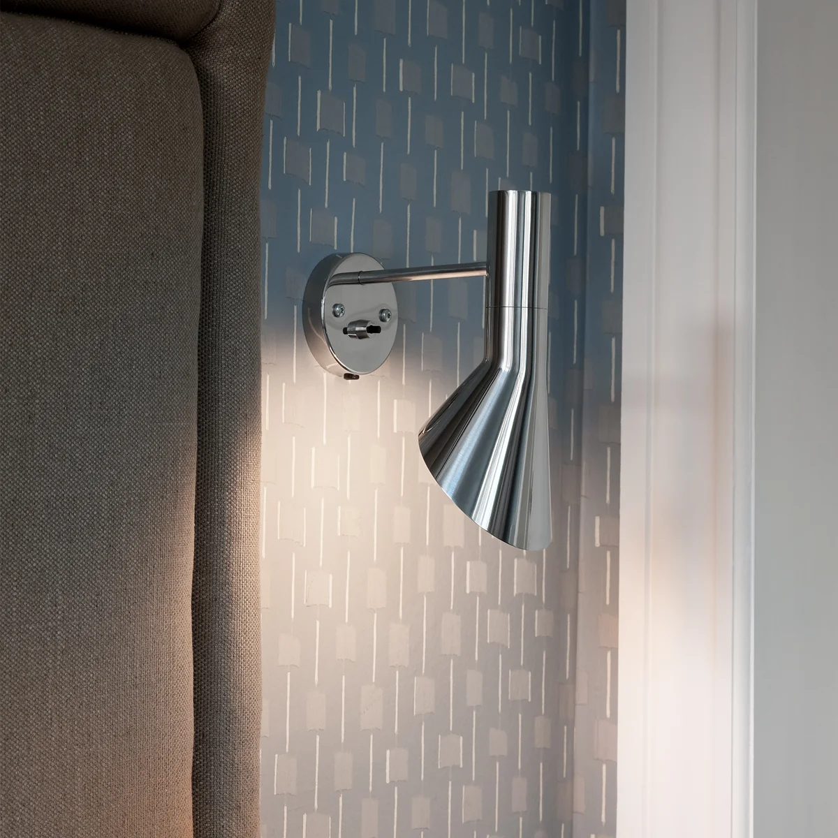 Die AJ Wandleuchte ist ein Entwurf der dänischen Design-Ikone Arne Jacobsen für das Radisson SAS Royal Hotel in Kopenhagen, das 1960 eingeweiht wurde. Arne Jacobsen schuf nicht nur das Gebäude, er entwarf auch die gesamte Inneneinrichtung, unter anderem Möbel, Besteck, Textilien und Leuchten und schuf damit eines der ersten Design-Hotels der Welt.