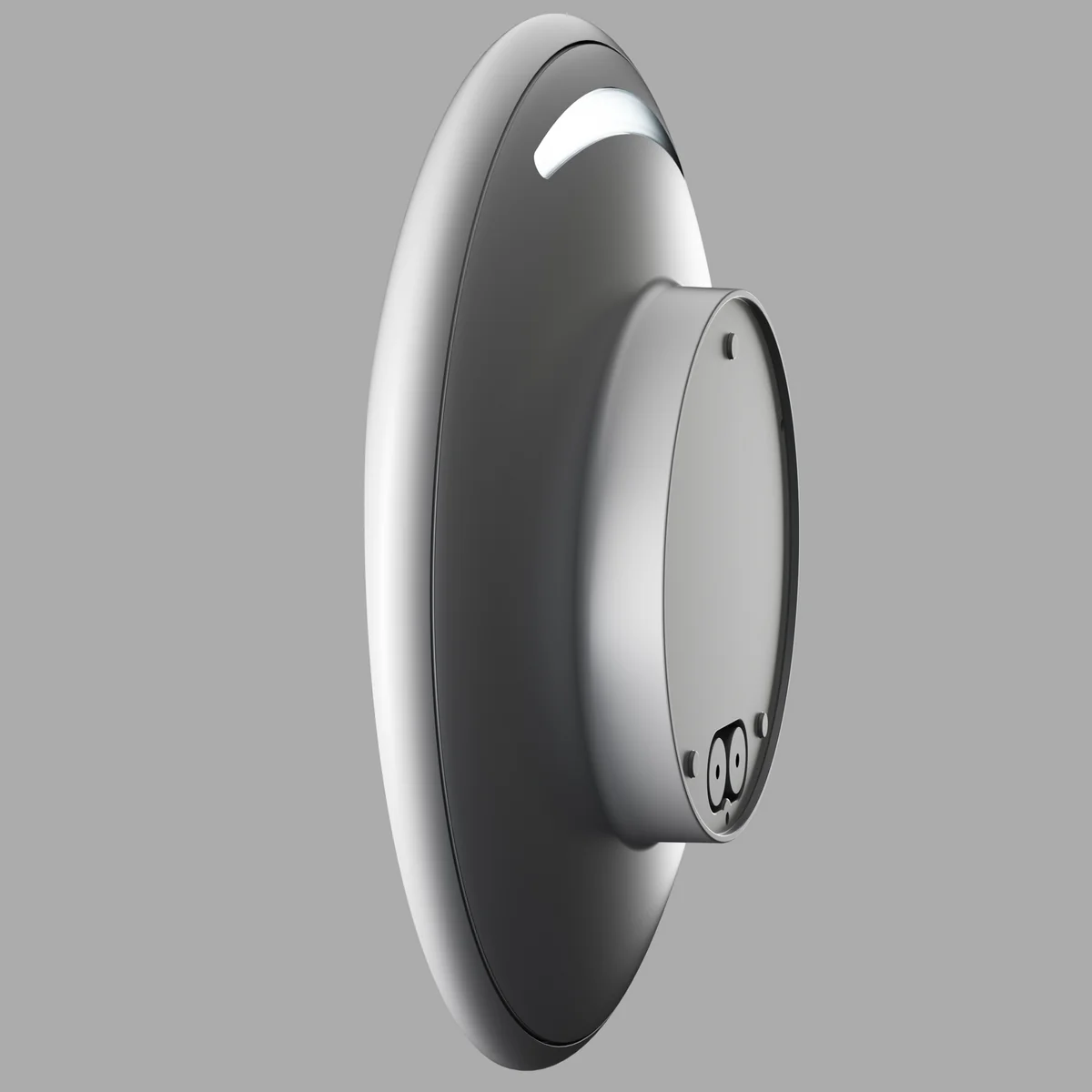 Durch die Öffnung auf der Oberfläche in Halbkreisform dringt das Licht von zwei LED Lampen und wird leicht reflektiert, sodass eine harmonische Kombination aus direkter und indirekter Beleuchtung entsteht. Zudem erinnert das Design an einen Halbmond und erhält damit eine natürliche Komponente.