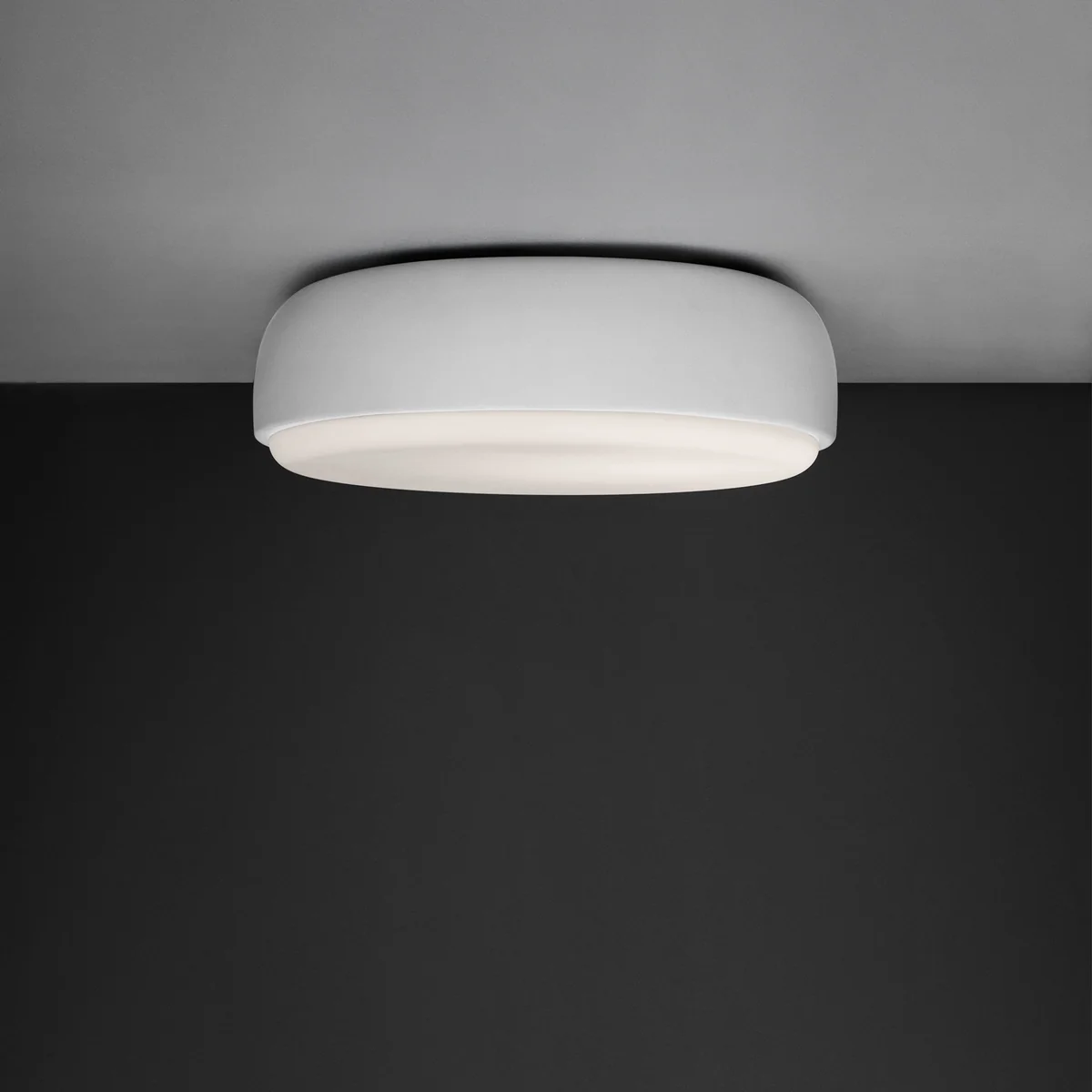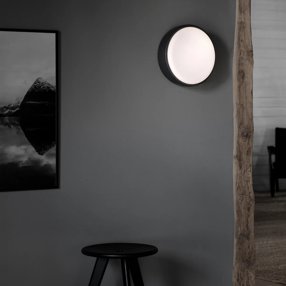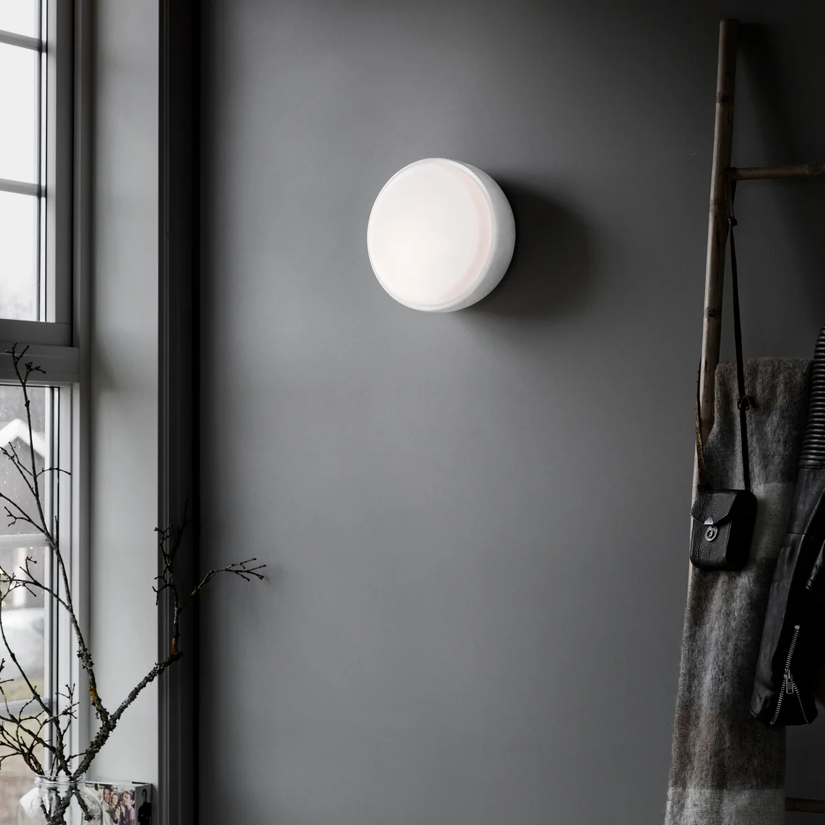 Die Leuchte, die sich sowohl an der Decke als auch an der Wand befestigen lässt, besteht aus einem runden Metallschirm und einer leuchtenden Glasscheibe, wodurch sie von allen Seiten diffuses und angenehmes Licht spendet. Dank der minimalistischen Erscheinung fügt sie sich optimal in moderne Innenräume ein. Over Me ist in verschiedenen Größen sowie Farben erhältlich und kann flexibel, je nach Raumsituation, an Decke oder Wand befestigt werden - ob im Badezimmer, in der Küche oder in Reihe im Flur arrangiert.