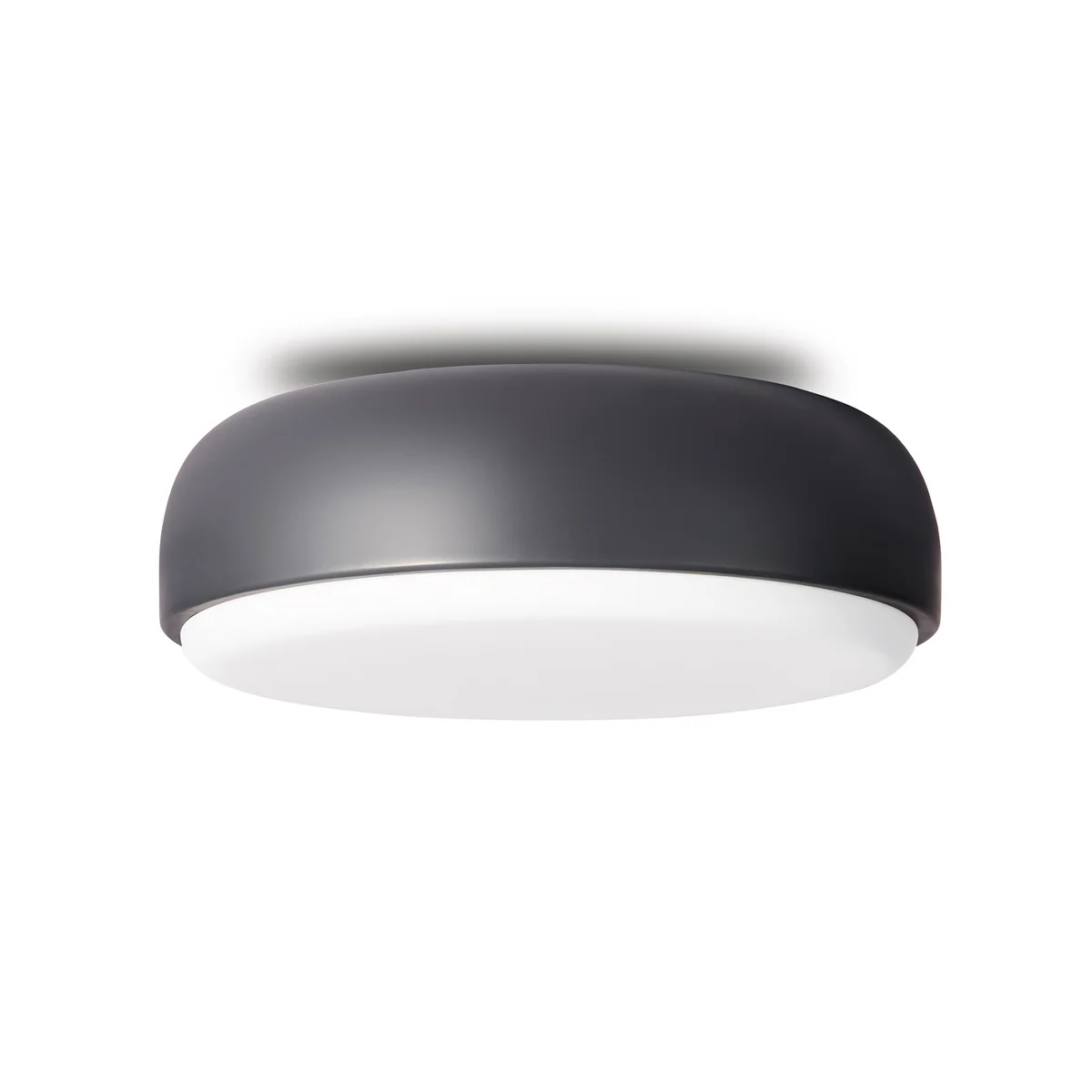 Die Leuchte, die sich sowohl an der Decke als auch an der Wand befestigen lässt, besteht aus einem runden Metallschirm und einer leuchtenden Glasscheibe, wodurch sie von allen Seiten diffuses und angenehmes Licht spendet. Dank der minimalistischen Erscheinung fügt sie sich optimal in moderne Innenräume ein. Over Me ist in verschiedenen Größen sowie Farben erhältlich und kann flexibel, je nach Raumsituation, an Decke oder Wand befestigt werden - ob im Badezimmer, in der Küche oder in Reihe im Flur arrangiert.