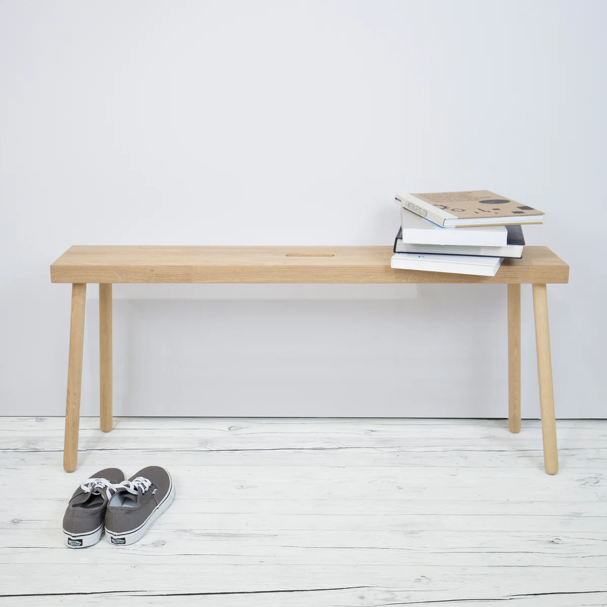 Im Flur dient Baenkk als Ort des Zusammenkommens und nützliche Hilfe beim Anziehen der Schuhe, im Schlafzimmer lässt sich die Bank stilvoll am Bettende platzieren und auch in Büros oder Lounges macht Baenkk eine auffallend gute Figur.
