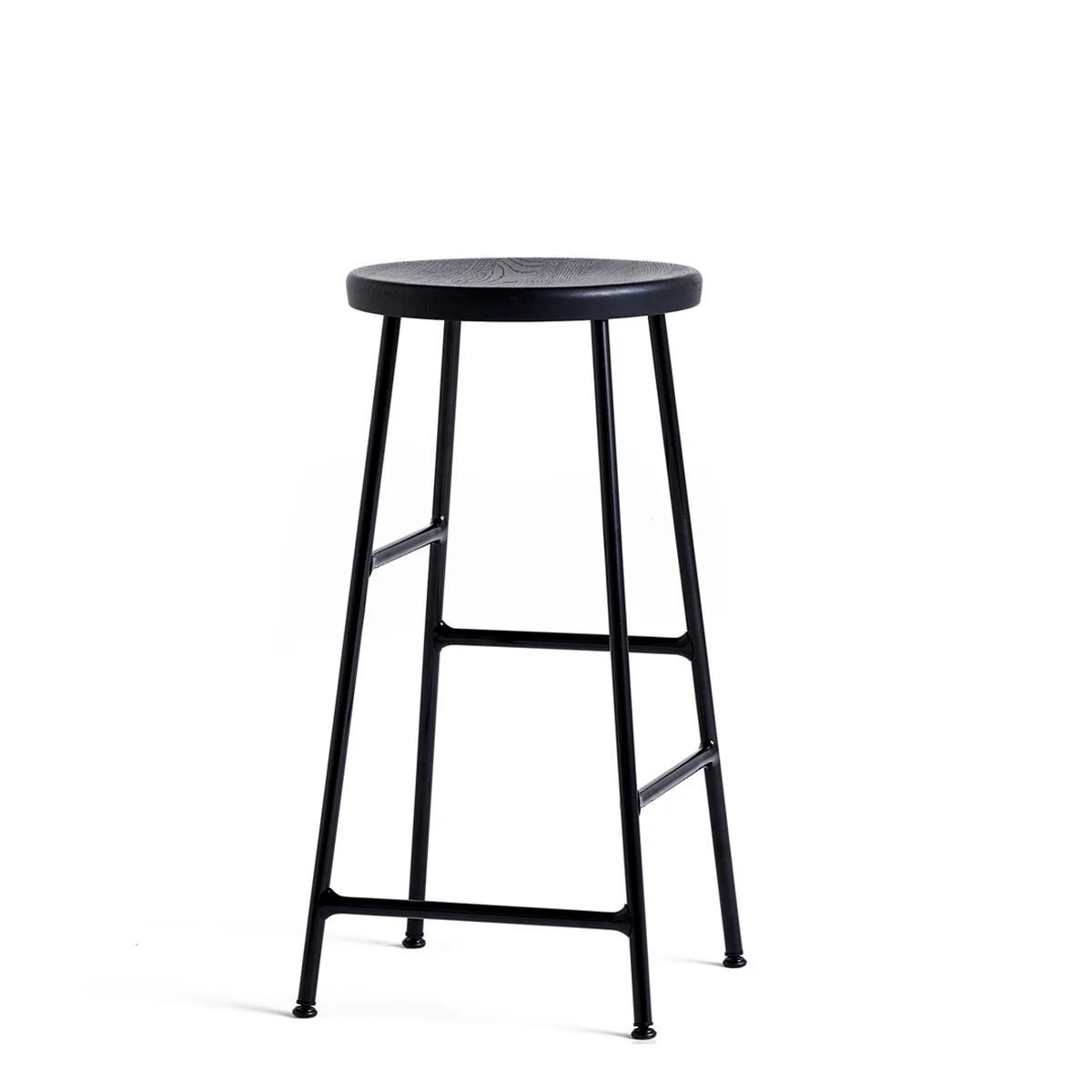 Jonas Trampdachs Cornet Barhocker von HAY ist ein klassischer Barhocker mit einer innovativen Stahlrohrtechnik, die von Fahrradträgern inspiriert wurde. Der runde Sitz aus massivem Eichenholz ruht auf einer schlanken Stahlbasis und kreiert eine interessante Komposition aus den verschiedenen Materialien, die den Hocker modern und zeitlos wirken lassen.