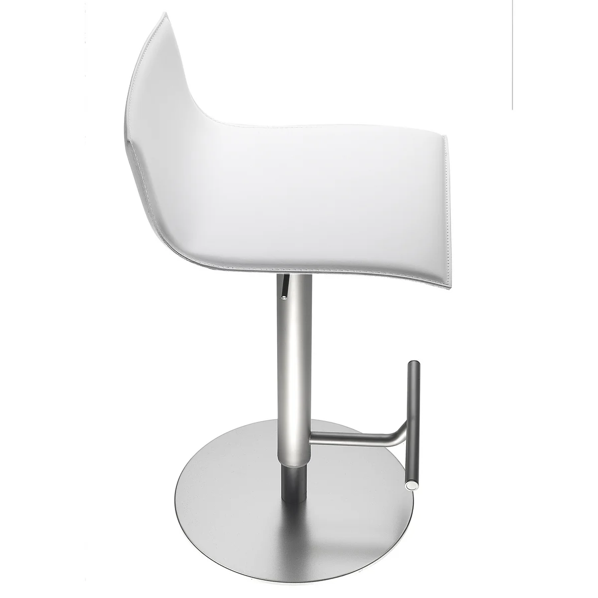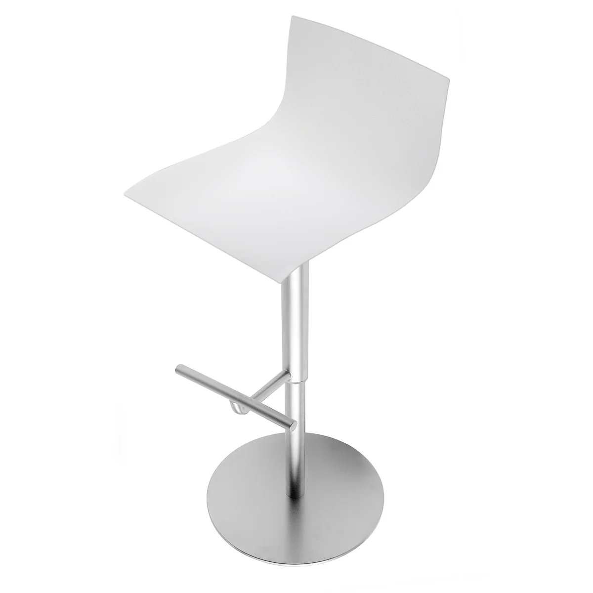 Die aus einem Stück gefertigte Sitzschale stützt den Rücken auf angenehme Art und Weise ab, während sich die Edelstahl-Basis des Lapalma Thin Barhockers mit einer Gasdruckfeder verstellen lässt. Der Hebel zum Verstellen ist unauffällig unter der Sitzschale des Thin angebracht, die Sitzhöhe kann zwischen 52 und 77 cm variiert werden. Filzgleiter an der Unterseite des Fußes schützen den Boden und den Lapalma Thin vor Beschädigungen.