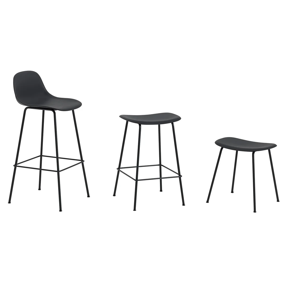 Der Fiber Barhocker mit Rückenlehne von Muuto besteht aus einem vierbeinigen Gestell aus pulverbeschichtetem Stahlrohr in verschiedenen Farben mit praktischen Streben zur Fußablage. Die Sitzfläche mit Rückenlehne wird aus Kunststoff mit 25 % Holzfaseranteil hergestellt und ist wahlweise in verschiedenen Farben oder mit Lederbezügen in verschiedenen Farben erhältlich. Die Sitzhöhe von 65 cm macht den Stuhl optimal für die hauseigene Bar.