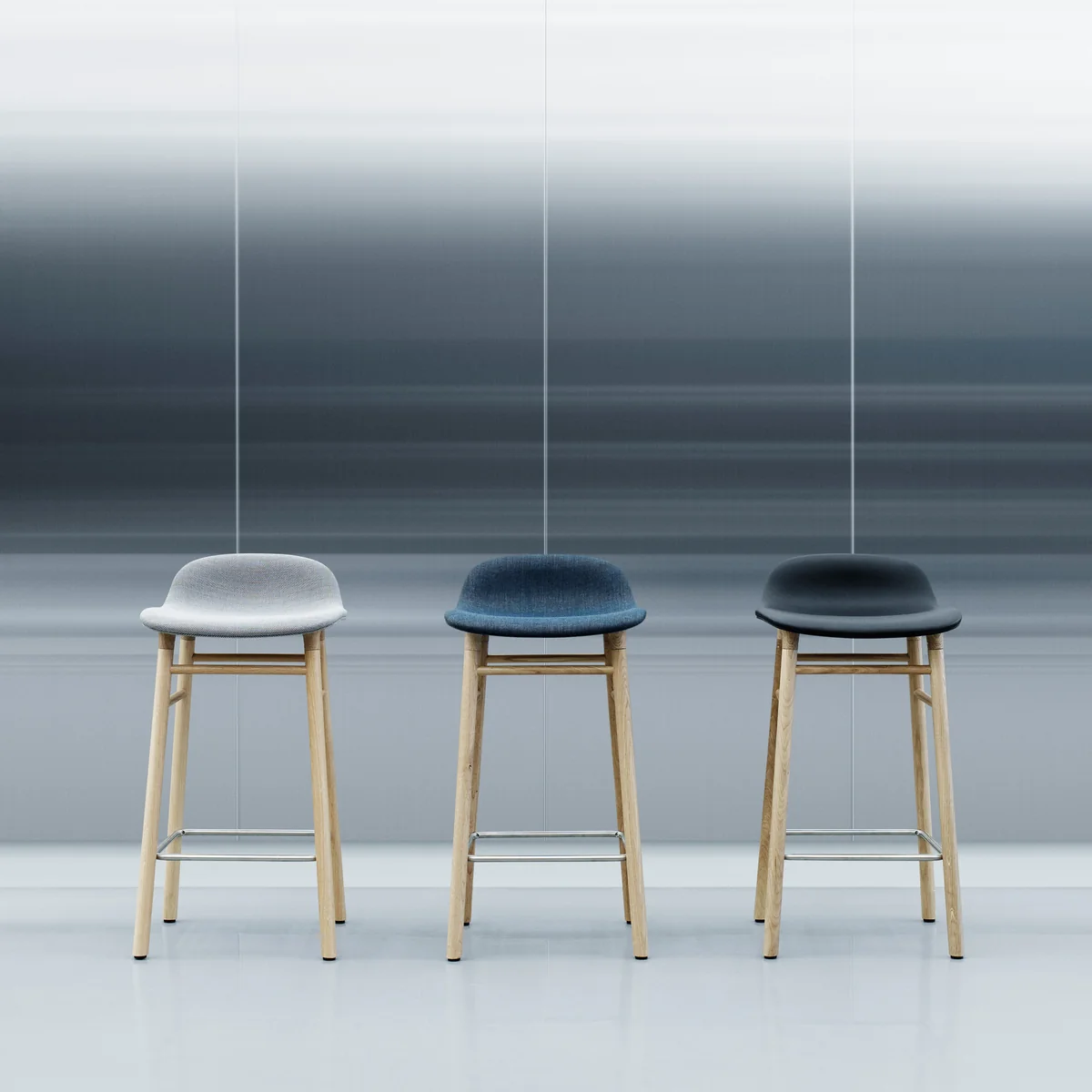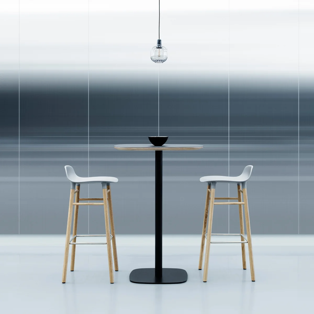 Auf Wunsch ist der Normann Copenhagen Form Hocker auch in anderen Farben, in einer niedrigeren Version (65 cm) sowie mit Untergestellen aus Stahl, Walnuss oder Eiche erhältlich.