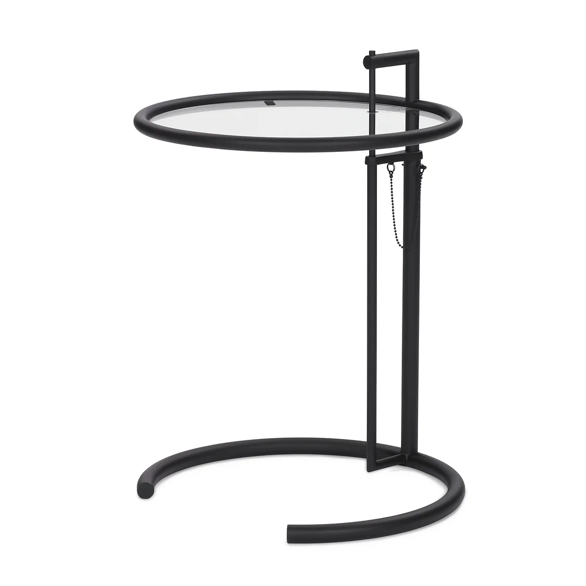 Eileen Gray begann bereits in den 1920er Jahren, mit Varianten zu dem Entwurf des Adjustable Table zu experimentieren. Zur Produktionsreife schaffte es der Tisch dann schließlich in den 1970er Jahren, zunächst noch in der verchromten Ausführung. Nun wurde mit der schwarzen Version die lang angedachte Vision einer eleganten Alternative zur klassischen Ausführung Wirklichkeit.