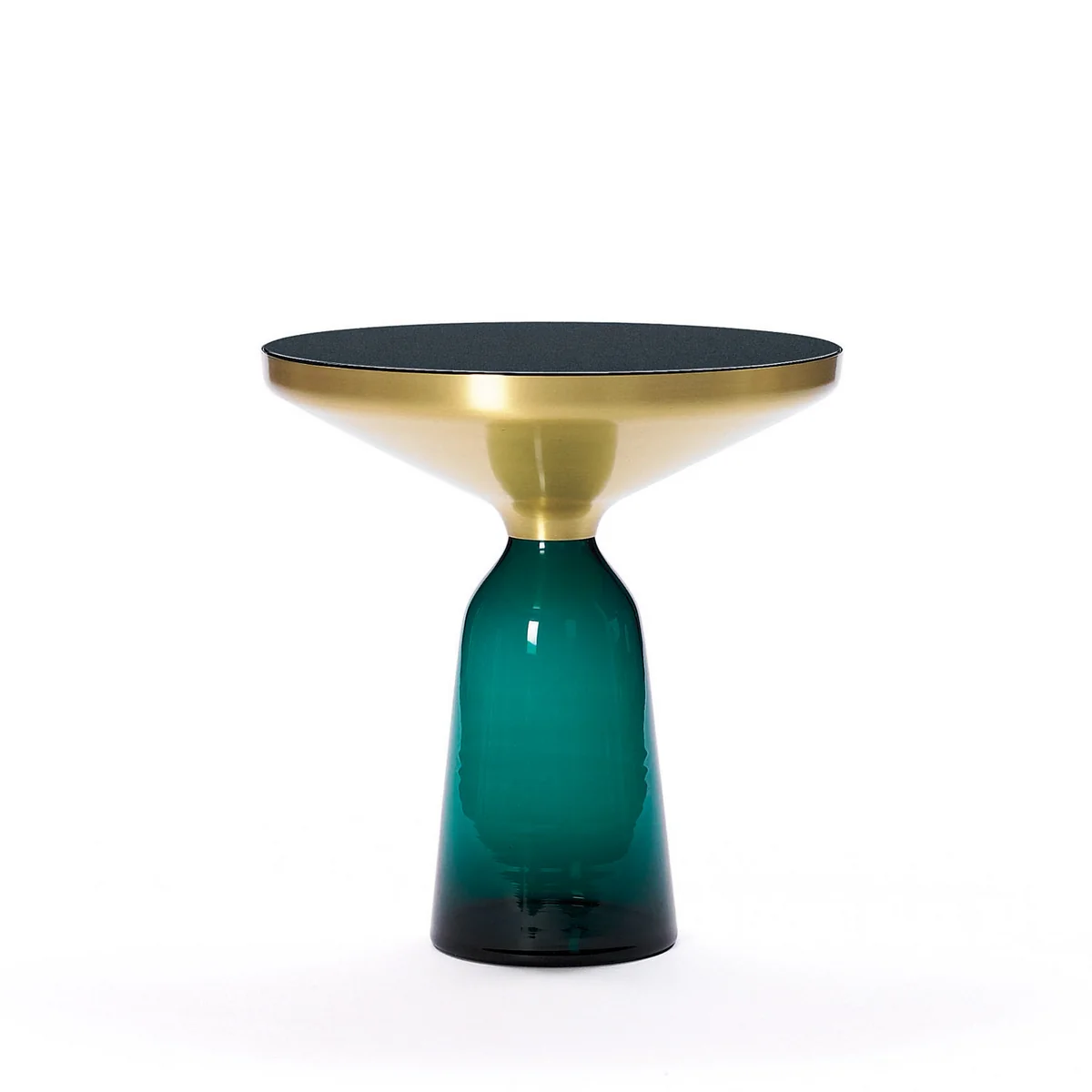 Der ClassiCon Bell Beistelltisch von Sebastian Herkner stellt den gewohnten Umgang mit Materialien auf den Kopf und überrascht die Wahrnehmung: Hier wird er Tischfuß zur prägnanten, farbig-transparenten Glasform im Raum, auf dem ein Metallkörper aufliegt.