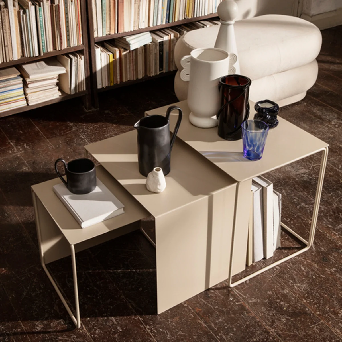 Die Cluster Tables von Ferm Living aus pulverbeschichtetem Stahl überzeugen mit ihrem zeitlosen, minimalistischen Design und besonderen Flexibilität. Das Set besteht aus drei unterschiedlich großen Tischen, die sich nach Belieben anordnen lassen.
