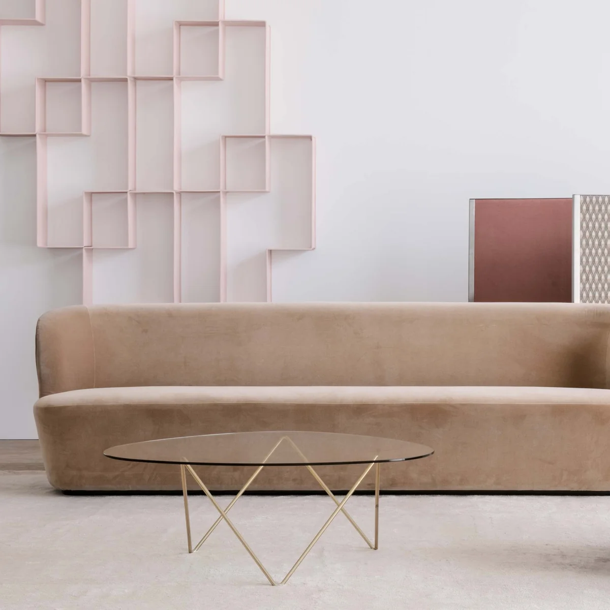 Dank des breit angelegten Pedrera Projekts erlangte Barba Corsini seinerzeit international Anerkennung und die Möbel avancierten zu Design-Klassikern. Der Pedrera Beistelltisch wird von Gubi mit einem Untergestell aus Metall hergestellt und besitzt eine organisch geformten Glasplatte.