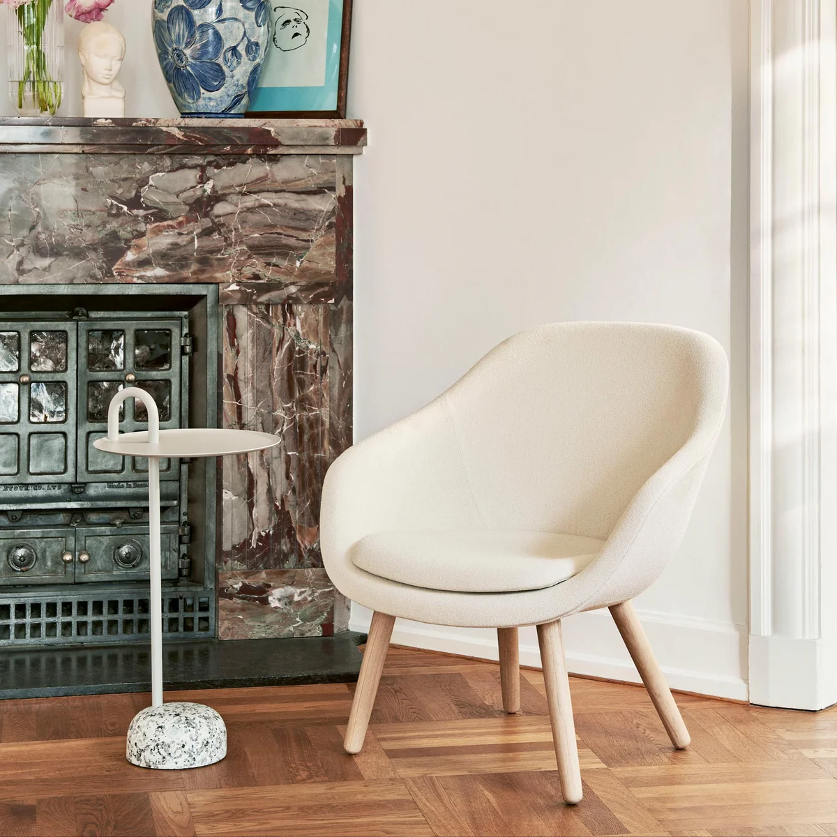 Der Bowler Beistelltisch von HAY ist ein Entwurf des Designers Shane Schneck und besticht durch seine besondere Form und die harmonische Kombination der Materialien. Gefertigt ist der Beistelltisch aus einem Stahlrohr, das sich durch die runde Tischplatte erstreckt und nach oben hin zu einem praktischen Griff biegt. Seine Basis ist aus Granit gefertigt, sorgt für eine raue Note und bietet zugleich Stabilität. Dennoch ist der Tisch leicht genug, um ihn einfach transportieren zu können. So kann der Bowler Beistelltisch neben dem Sofa ebenso platziert werden wie als Nachttisch neben dem Bett.