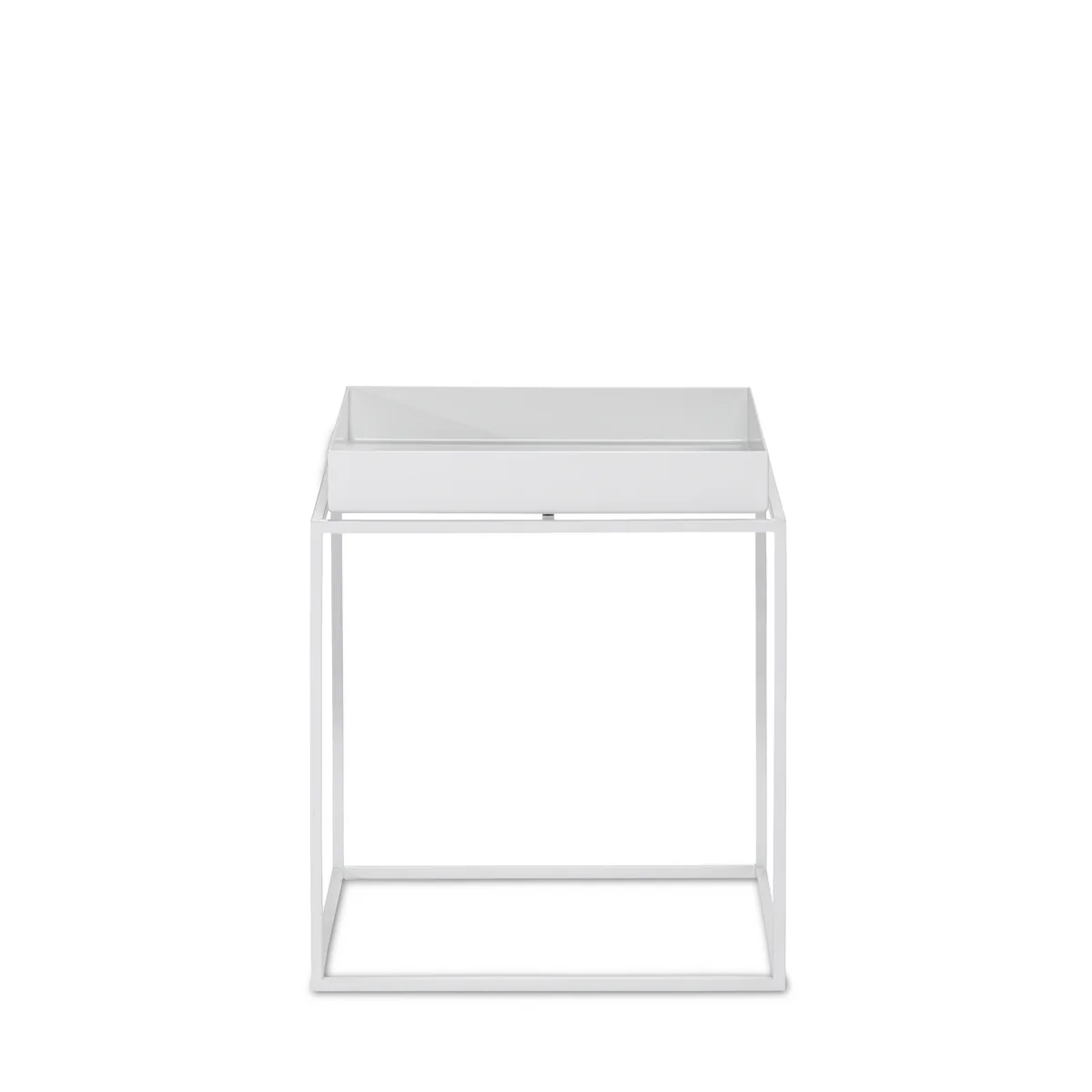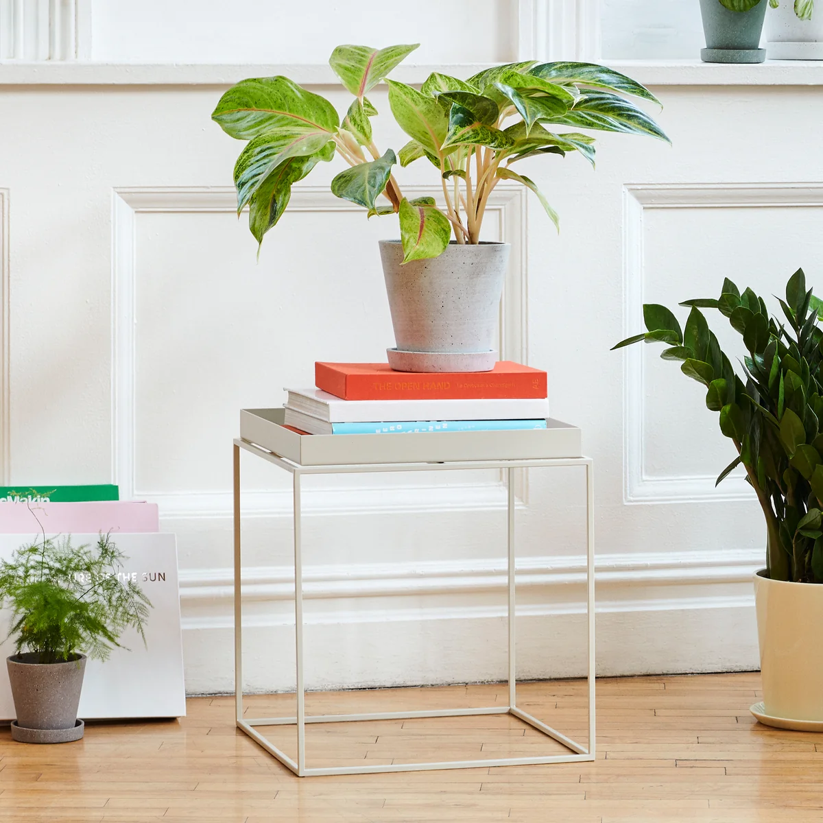Das Tablett, das den Tray Table seinen Namen gibt, dient als praktische Tischplatte, die bei Bedarf mit weiteren, kleineren Tabletts ergänzt und gefüllt werden kann. Dies strukturiert nicht nur den Tisch und schafft Platz, sondern sorgt auch für einen interessanten grafischen Touch.