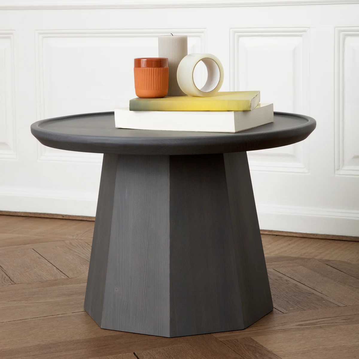 Ein voluminöser achteckiger Fuß macht die Pine Tische zum Hingucker in jedem Raum. Die dünne, kreisrunde Tischplatte mit ihrem abgerundeten Rahmen steht im Kontrast zum Fuß und lässt die Holzkonstruktion optisch leicht wirken. Die deutlich sichtbare Maserung des Kiefernholzes sorgt zusätzlich für einen Hingucker. Die zu Unrecht in Vergessenheit geratene Holzsorte erhält in dieser spielerischen Komposition neue Aufmerksamkeit.