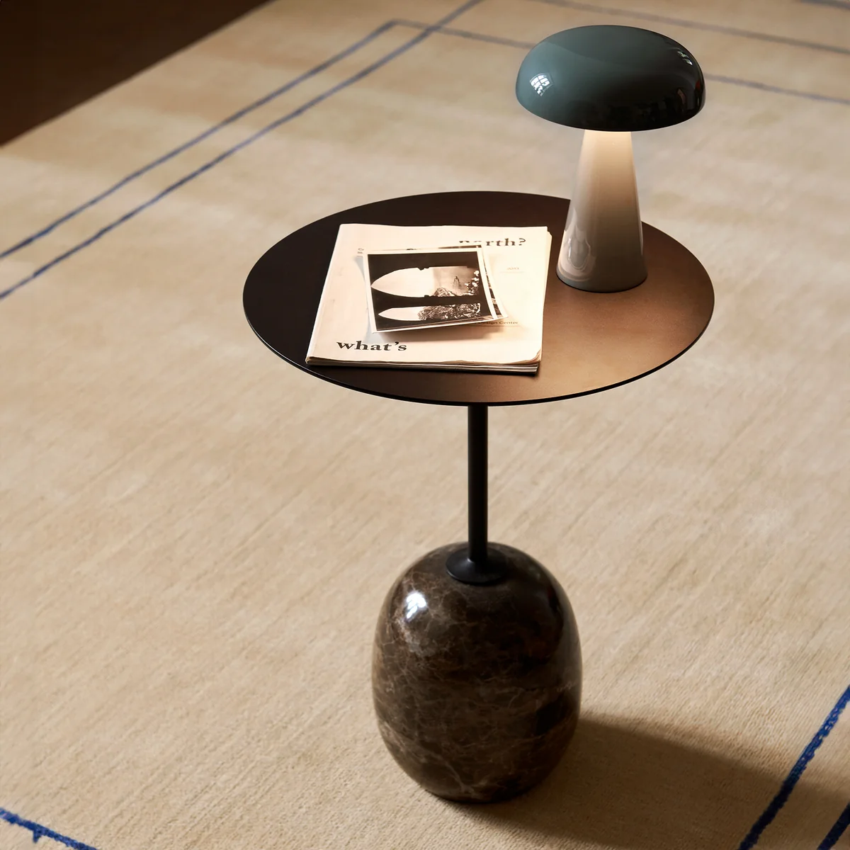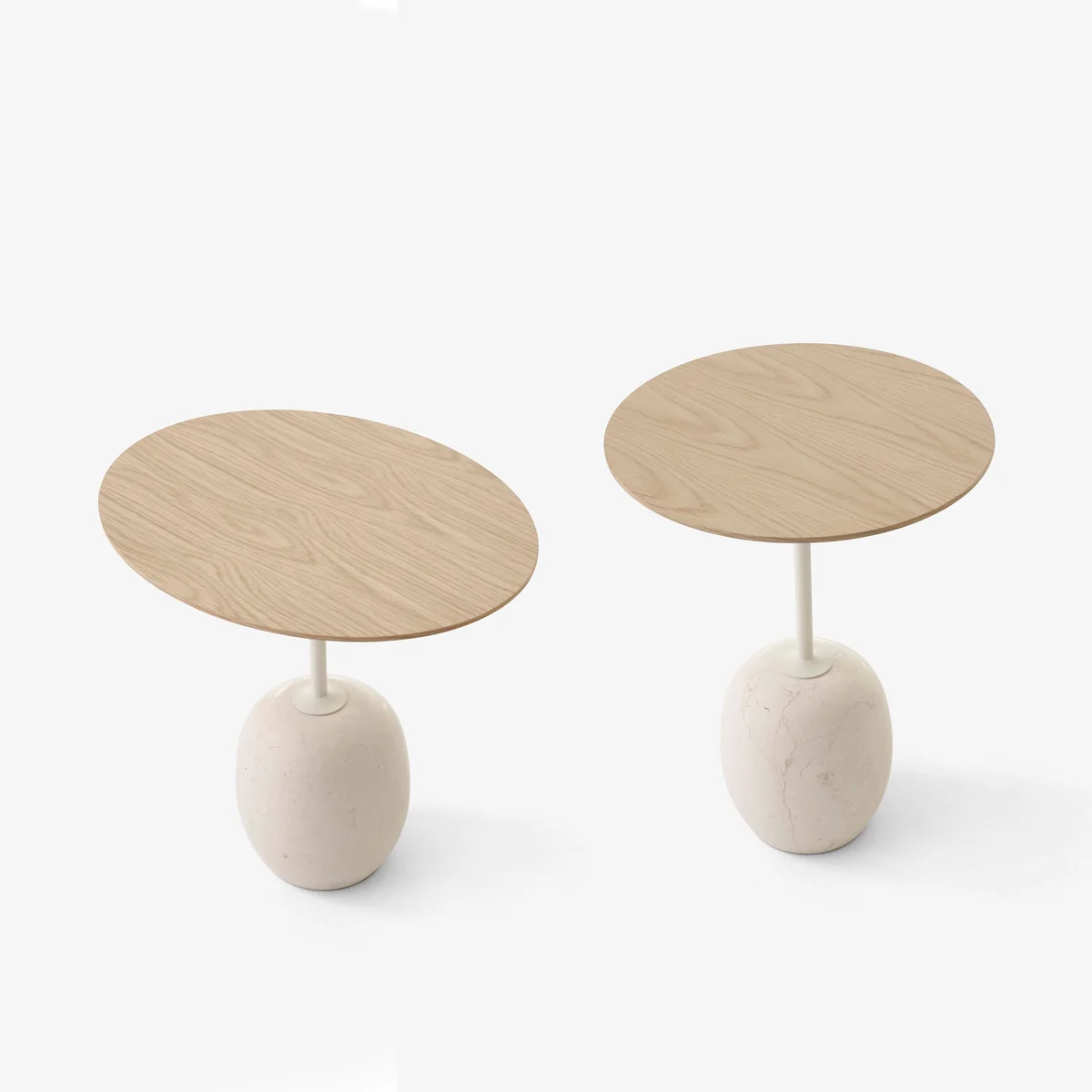 Der Lato Beistelltisch von &Tradition überzeugt durch seine skulpturähnliche Silhouette mit einer schlanken Tischplatte in oval oder rund, die durch eine Marmor Basis ausgeglichen wird. Der Entwurf stammt von Luca Nichetto, der sich für den Beistelltisch von einem auf den Kopf gestellten Lollipop inspirieren ließ.