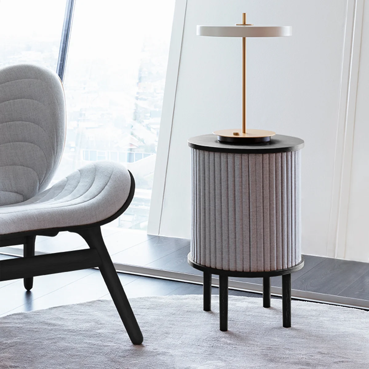 Der Audacious Beistelltisch von Umage eignet sich hervorragend als Nachttisch im Schlafzimmer oder neben dem Sofa. Der Beistelltisch ist eine praktische Lösung mit Stauraum für kleinere Gegenstände und Erinnerungen.