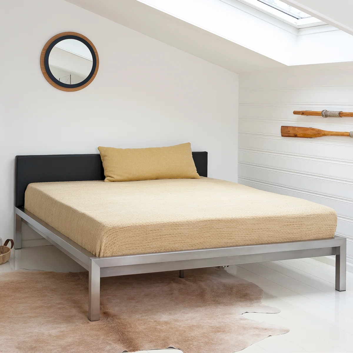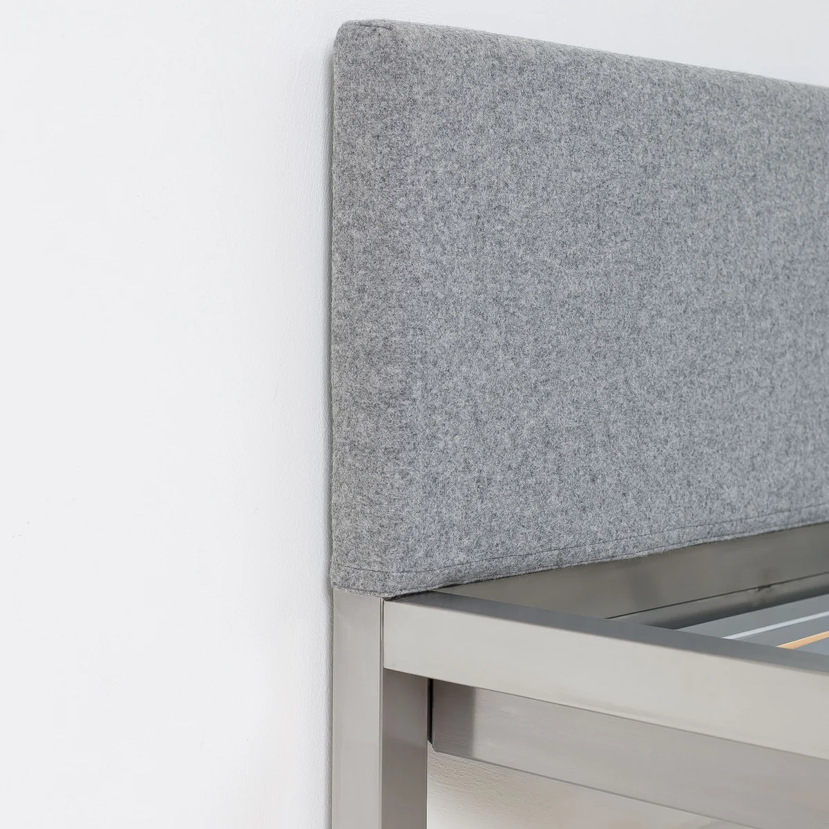 Das Pure Bett von Hans Hansen ist in vier Größen erhältlich: 140, 160, 180 oder 200 x 200 cm. Auch eine Variante in Übergröße (extra lang) mit einer Länge von 210 cm ist erhältlich. Optional ist es mit einem gepolsterten Kopfteil verfügbar für Edelstahl-(nur Bezug ohne Polsterung) und der Holzvariante (Bezug mit Polsterung). Als Pure Wood ist das minimalistische Bett auch als Holzbett erhältlich.