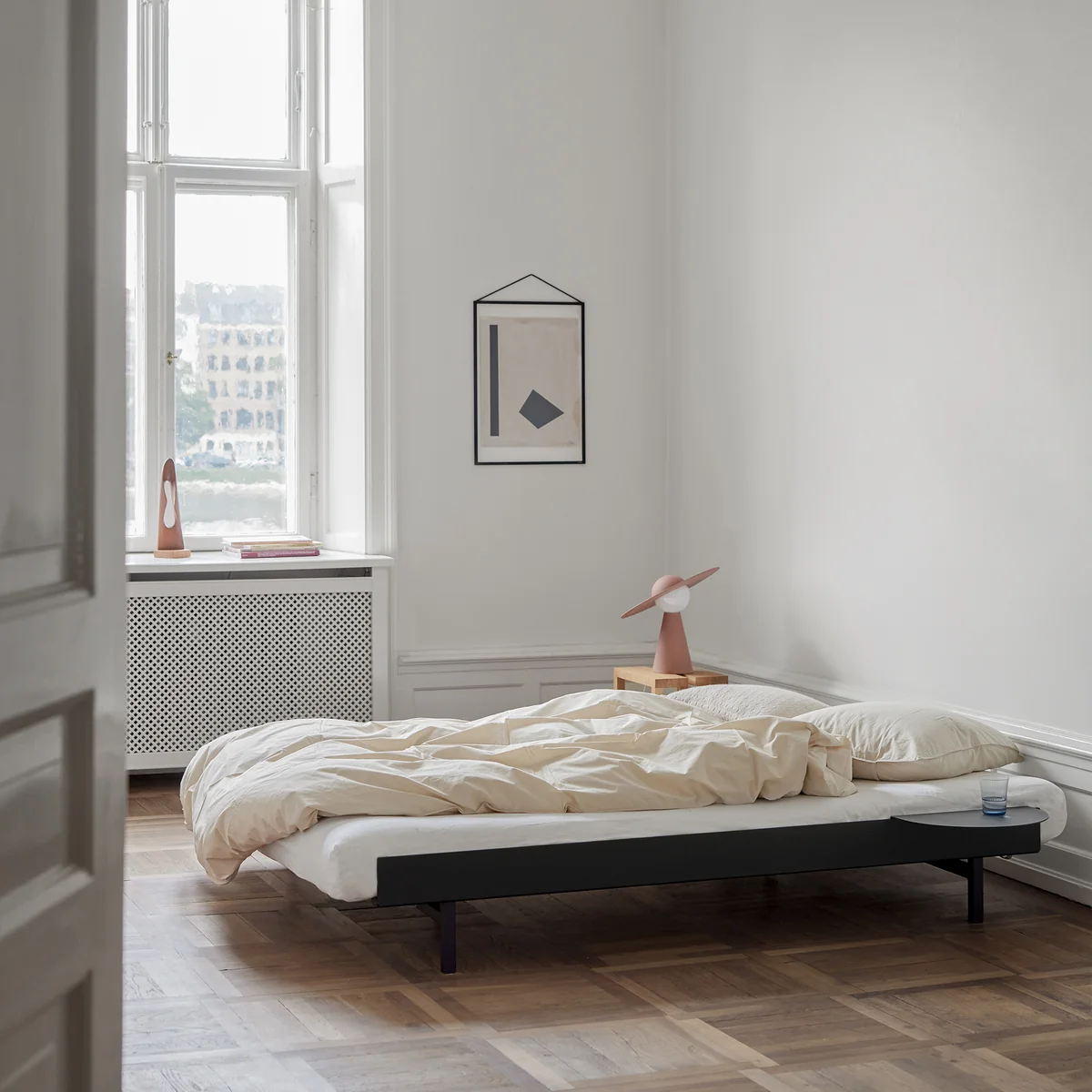 Das Moebe Bett überzeugt durch seine klare Formensprache, hochwertige Materialien und flexible Funktionalität. Der pulverbeschichtete Stahlrahmen mit feinkörniger, matter Oberfläche sorgt für einen modernen, natürlichen Ausdruck im Schlafzimmer. Die Konstruktion ist ideal für verschiedene Wohnsituationen. Dank seiner zerlegbaren Bauweise ist das Bett besonders langlebig, transportfreundlich und einfach zu reparieren. Flach verpackt geliefert, fügt sich das Design nahtlos in die nachhaltige Gestaltungsphilosophie von Moebe ein.