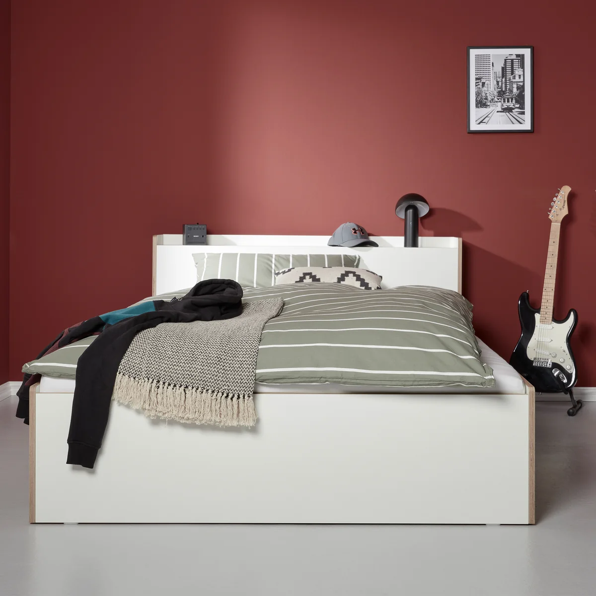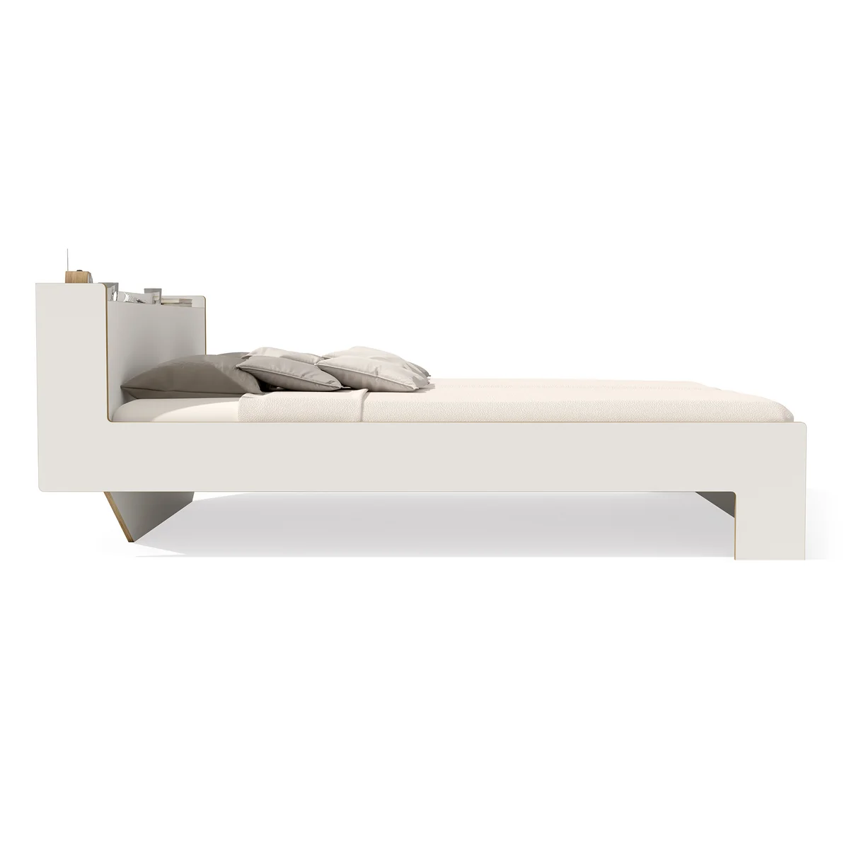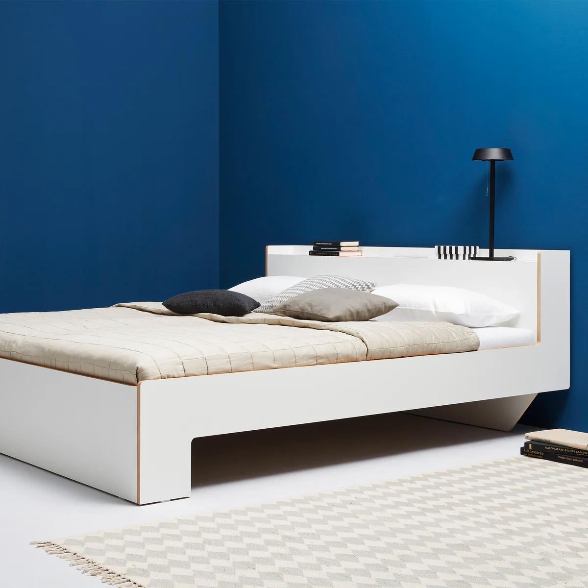 Das Bett Nook bietet mehr, als auf den ersten Blick ersichtlich ist. Von vorn strahlt es eine besondere Ruhe und Beständigkeit aus, während das Bett aus den Müller Small Living von der Seite dynamisch und leicht wirkt. Die leicht abgerundeten Ecken und Kanten aus edlem Birkenschichtholz bilden einen besonders schönen Kontrast zur weißen Oberfläche von Nook.