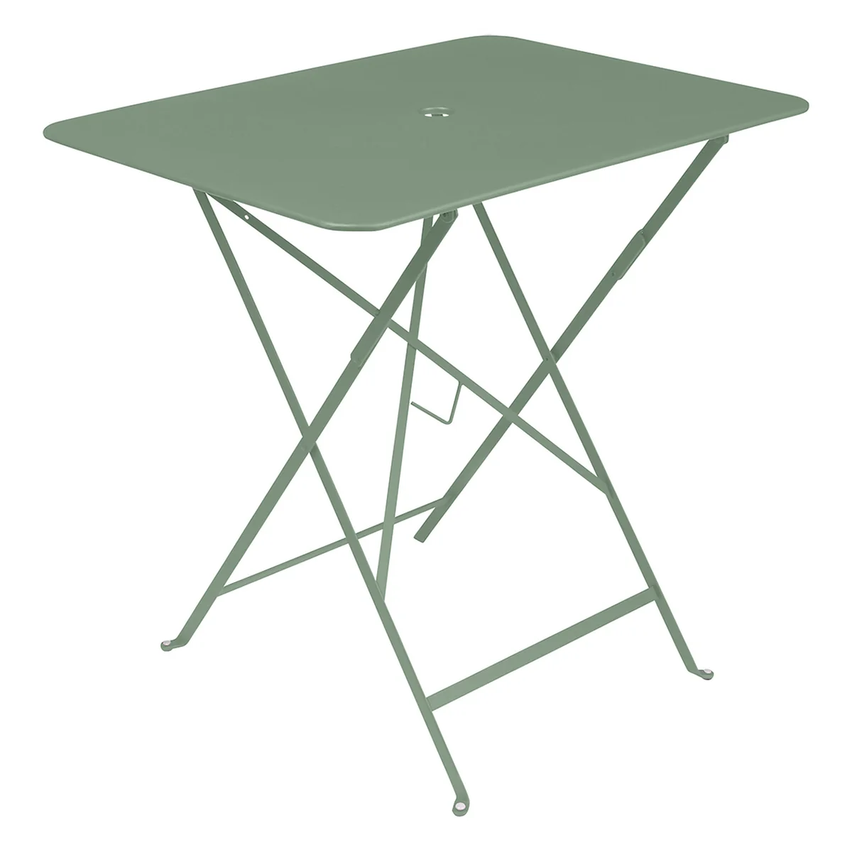 Der Fermob Gartentisch mit einer Größe von 77 x 57 cm verfügt über eine kleine Aussparung in der Mitte der Tischplatte, die als praktische Sonnenschirmhalterung dient. Dabei können Sonnenschirme mit einem Ständer von max Ø 41 mm in die Tischplatte eingelassen werden.