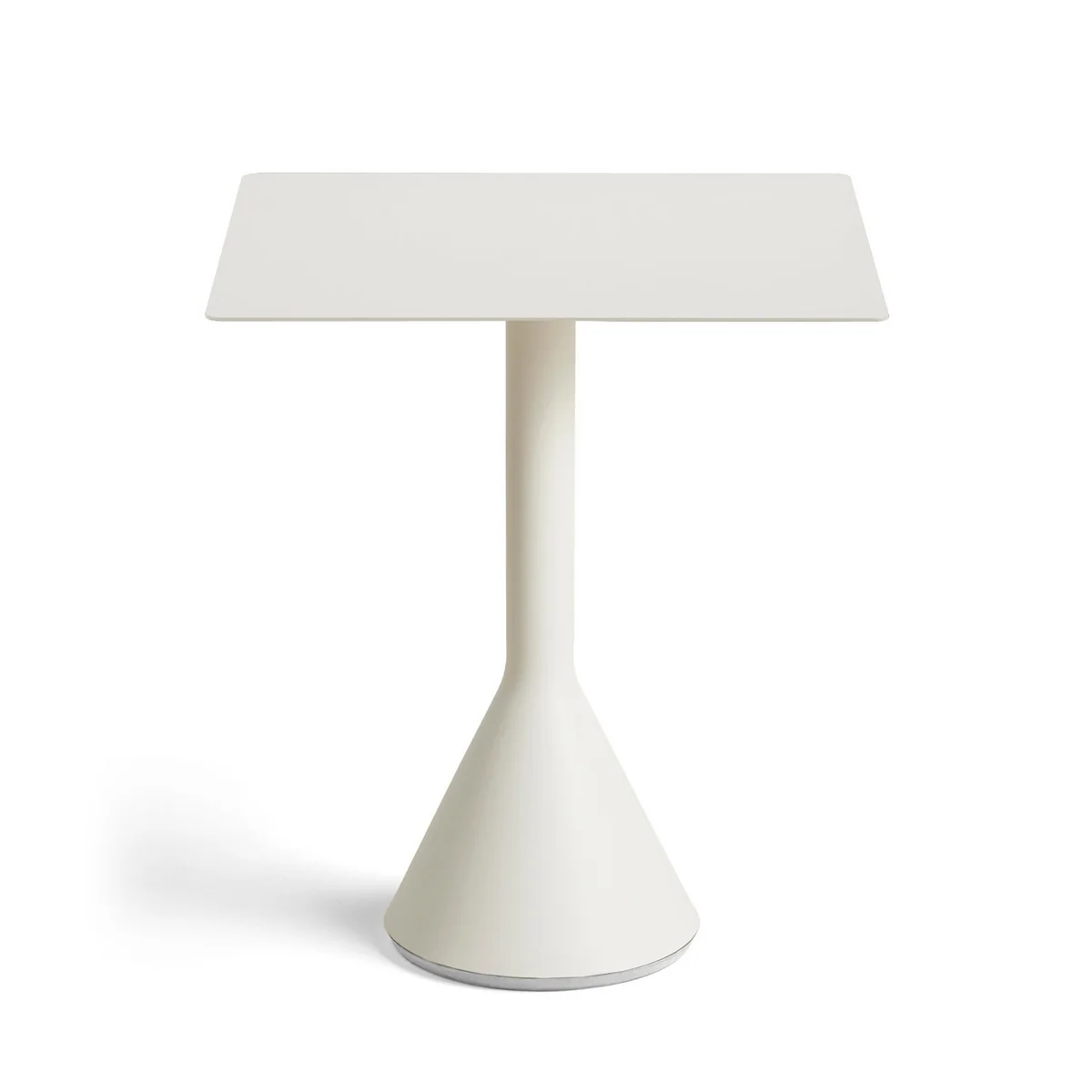 Der Palissade Cone Bistrotisch ist ein Neuzugang der Outdoor Palissade Serie von HAY und zeichnet sich durch seine kegelförmige Basis aus, die mit Beton gefüllt für einen stabilen Stand sorgt. Trotz der robusten Eigenschaften wirkt der Fuß keinesfalls klobig, sondern bekommt in Kombination mit der dünnen Tischplatte eher eine grafische Note, die ebenso beim Rest der von Ronan & Erwan Bouroullec entworfenen Serie zu erkennen ist.