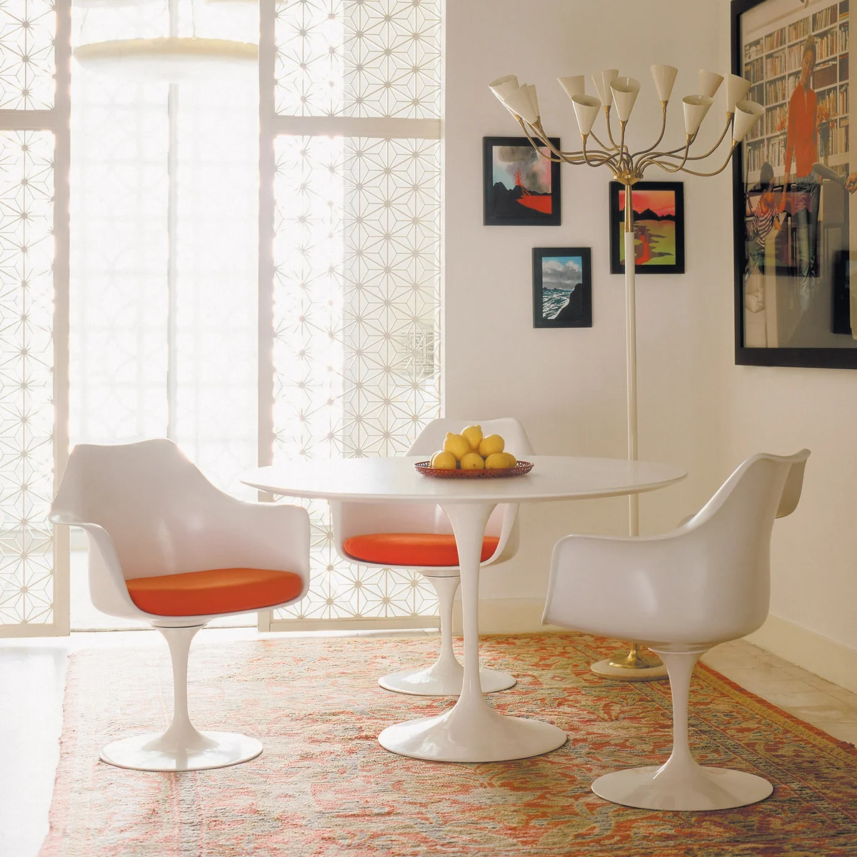 War anfangs nur der weltbekannte Tulip Chair nach der Tulpe benannt, ist der dazugehörige Tisch heute ebenfalls als "Tulip Table" bekannt, denn die Kollektion aus einbeinigen Möbeln von Knoll gehört untrennbar zusammen. Der 1956 gestaltete Saarinen Tulip Tisch ist mit seiner klaren, skulpturalen und organischen Form ein Musterbeispiel an Zeitlosigkeit, das sich bis heute in zahllosen Museen, Hotels und Galerien rund um den Globus wiederfinden lässt.
