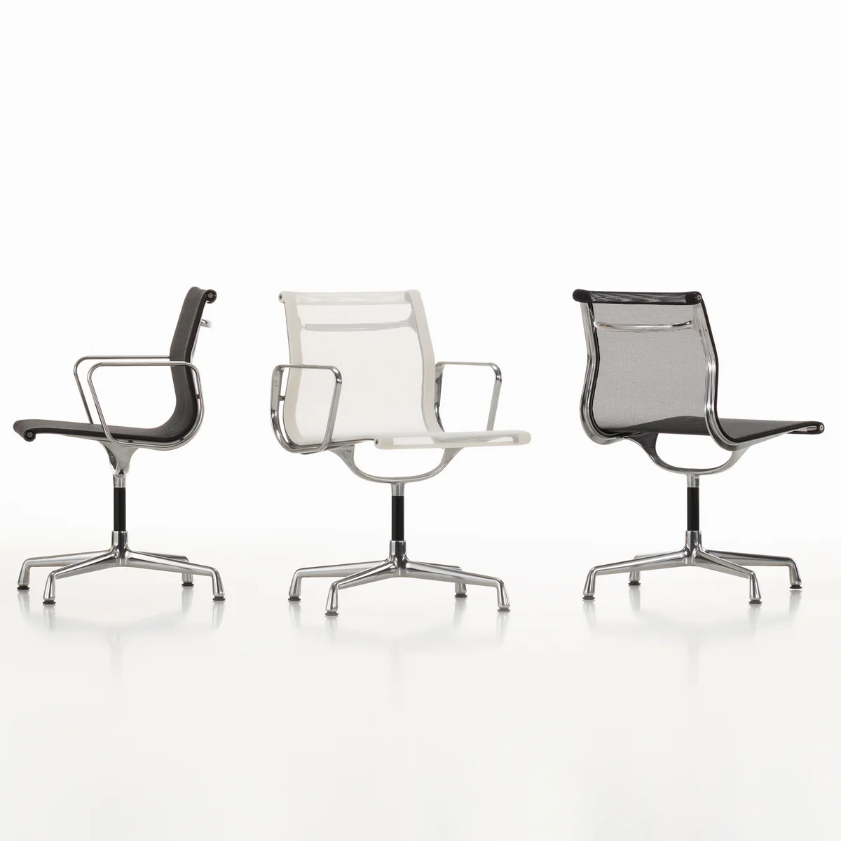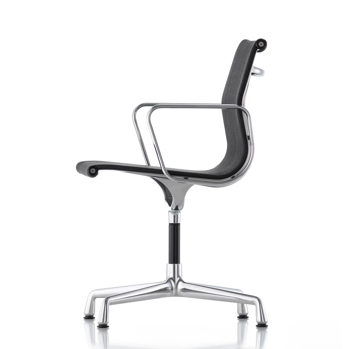 Vitra - EA 104 Drehstuhl beschichtet tiefschwarz mit Armlehnen, drehbar, Hopsack nero (Filzgleiter)