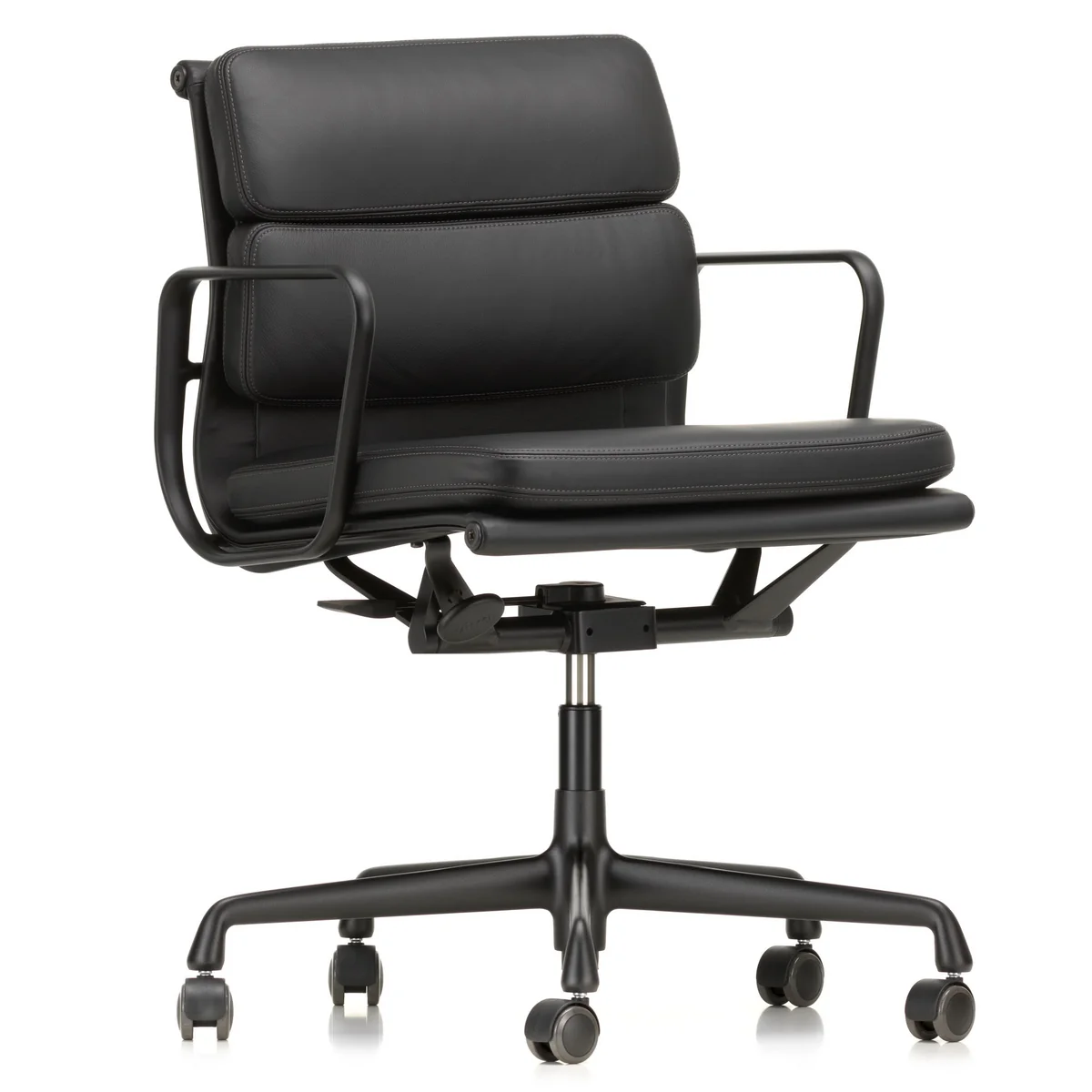 Die Modelle EA 217 und EA 219 sind die Bürodrehstühle in der Stuhlfamilie Soft Pad Group von Charles und Ray Eames. Dank ihrer repräsentativen Ausstrahlung eignen sie sich insbesondere für Management-Bereiche. Ihre Kippmechanik lässt sich auf das Nutzergewicht einstellen und bietet in Verbindung mit dem weichen Polster einen hohen Komfort.