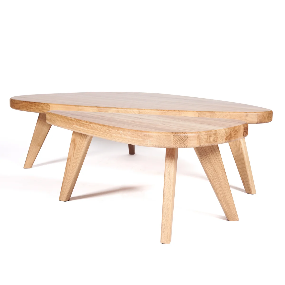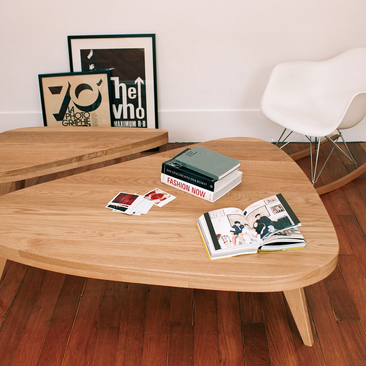 The Hansen Family bietet den Couch- und Sofatisch aus der Remix Collection in drei Größen sowie in Sets an. Das Besondere an den Sets: Die beiden enthaltenen Tische werden aus demselben Stück Holz hergestellt. Daher haben beide Tische die gleiche Holzmaserung.