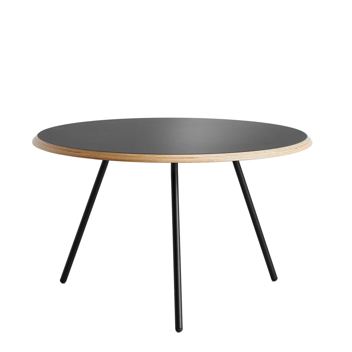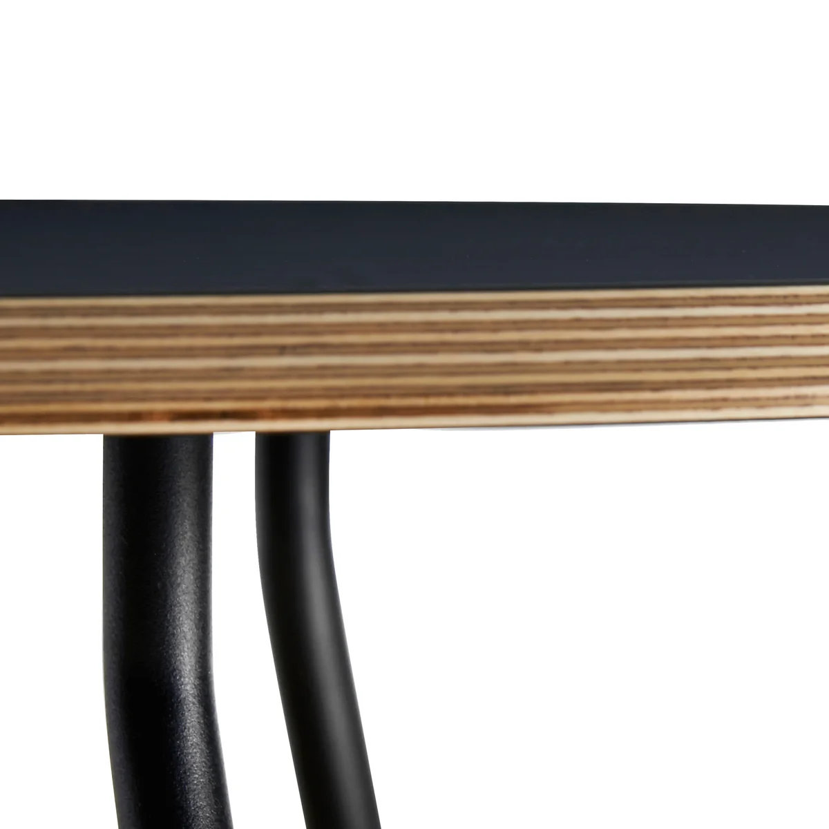 Die Version in Schwarz besteht aus Sperrholz mit Fenix-Laminat Finish, das in Italien mit Nano-Technologie hergestellt wird und dem Tisch seinen matten, weichen Look verleiht. Die Tischplatte der grauen Version besteht aus Faserbeton, welche mit einer Hochglanz-Lasur überzogen wird, um für eine weiche Optik zu sorgen.