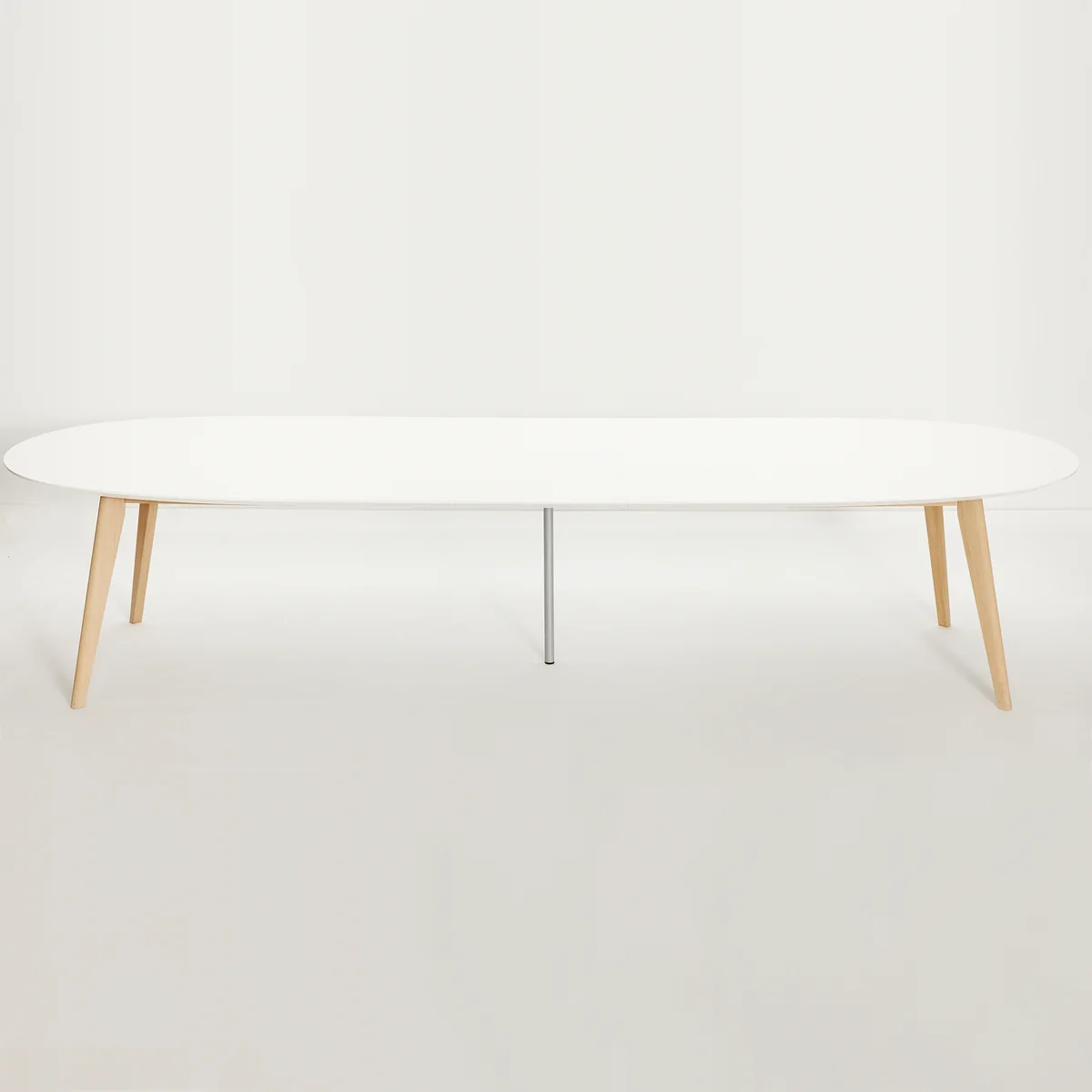 Die Tischplatte ist oval geformt und lässt sich nach Belieben mit bis zu drei Platten (nicht im Lieferumfang enthalten) ausziehen. So kann der Esstisch in 50 cm Schritten bis zu 1,5 Meter verlängert werden.