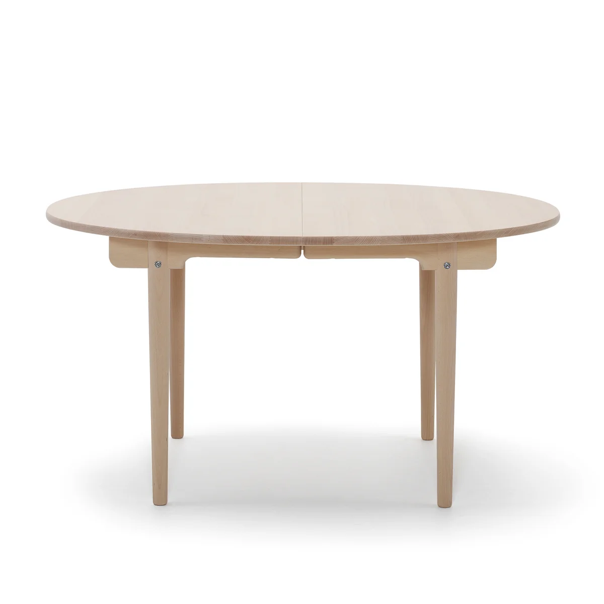 Der CH337 verfügt über die Maße 140 x 115 cm und bietet damit Platz für 6-8 Personen. Gemütlichen Dinnerabenden oder einem großen Frühstück mit Freunden und Familie steht so nichts mehr im Wege. Kündigen sich spontan mehr Gäste an, so lässt sich der Tisch mit Hilfe von zusätzlich erhältlichen Einlegeplatten nach Bedarf erweitern. Da der Tisch für bis zu zwei Einlegeplatten mit einer Breite von 60 cm konzipiert ist, lässt er sich um vier Plätze erweitern. Eine wunderbare Größe also, um gemeinsam mit der ganzen Verwandtschaft oder den liebsten Freunden zu speisen.