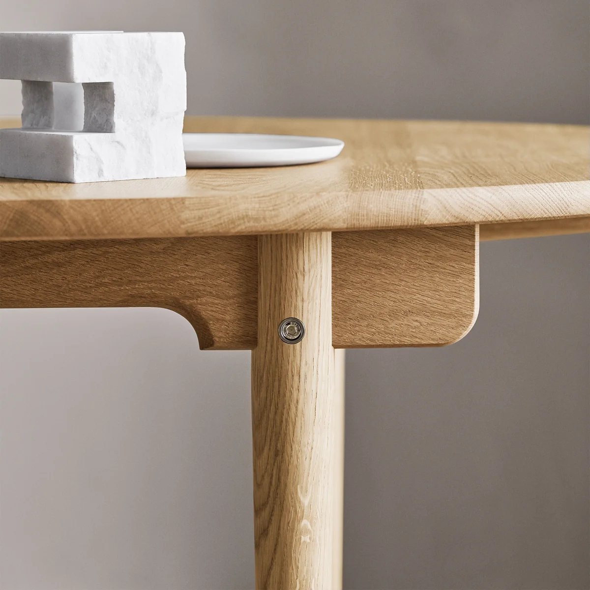 Hans J. Wegner entwarf 1962 den Esstisch CH338 für Carl Hansen und schuf damit ein smartes Möbelstück, das sich in eine Vielzahl von Einrichtungen einfügt. Mit den Maßen 200 x 115 cm bietet der Tisch Platz für 8-10 Personen und eignet sich damit hervorragend für Dinnerabende mit Freunden und der Familien. Sollen einmal unangemeldete Gäste dazukommen, stellt auch das kein Problem dar, denn der Tisch lässt sich leicht mit Hilfe von zwei zusätzlich erhältlichen Auszugplatten (separat erhältlich) erweitern, sodass weitere 4 Personen dem Dinner beiwohnen können.