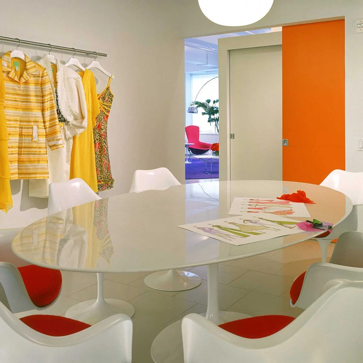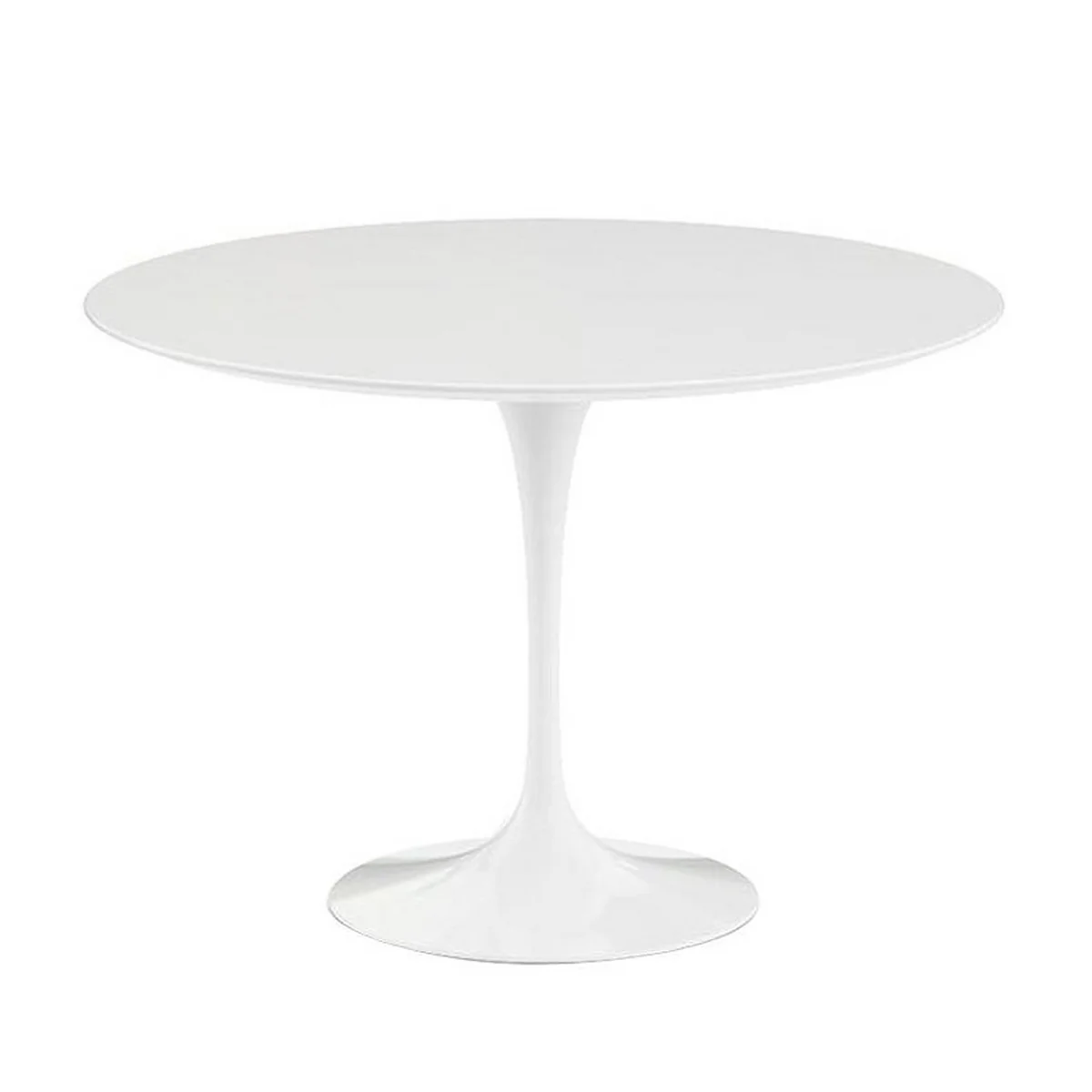 War anfangs nur der weltbekannte Tulip Chair nach der Tulpe benannt, ist der dazugehörige Tisch heute ebenfalls als "Tulip Table" bekannt, denn die Kollektion aus einbeinigen Möbeln von Knoll gehört untrennbar zusammen. Der 1956 gestaltete Saarinen Tulip Esstisch ist mit seiner klaren, skulpturalen und organischen Form ein Musterbeispiel an Zeitlosigkeit, das sich bis heute in zahllosen Museen, Hotels und Galerien rund um den Globus wiederfinden lässt.
