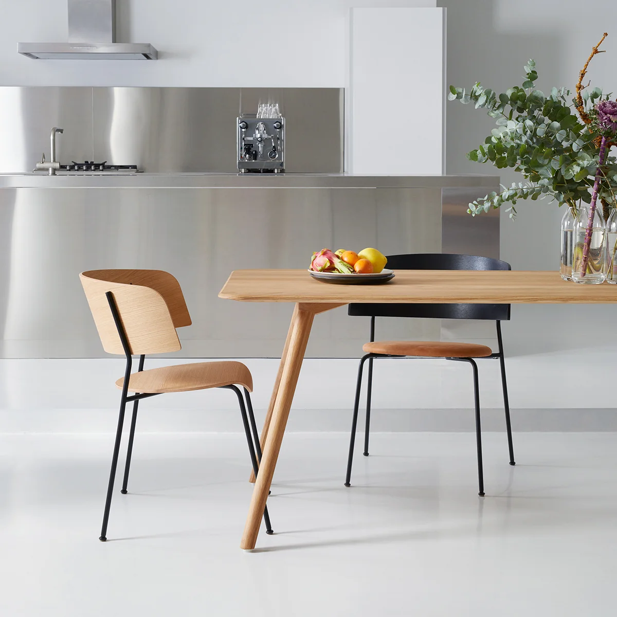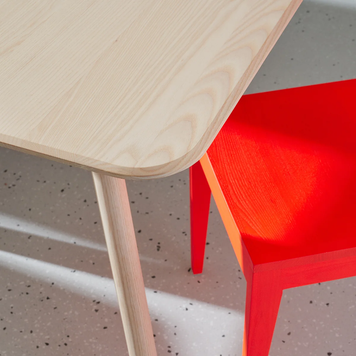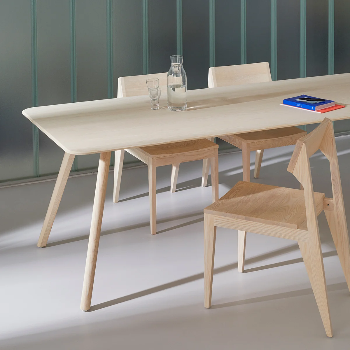 Der Esstisch ist ein Ort, an dem wir uns treffen, gemeinsam essen und uns unterhalten, ein Ort des Zusammenkommens. Der Meyer Esstisch von David Spinner für OUT Objekte unserer Tage ist solch ein Ort und strahlt aufgrund seiner Materialität und Formgebung Wärme, Wohnlichkeit sowie Geborgenheit aus. Aus massiver Esche oder Eiche gefertigt, dessen Holzmaserung deutlich zu erkennen ist, setzt der Tisch natürliche Akzente, die jedes Ambiente gemütlich und einladend machen. Aufgrund der dünnen Tischplatte und der schlanken Beine wirkt die Gesamterscheinung jedoch keinesfalls massiv, sondern erhält einen eher skandinavischen Touch.