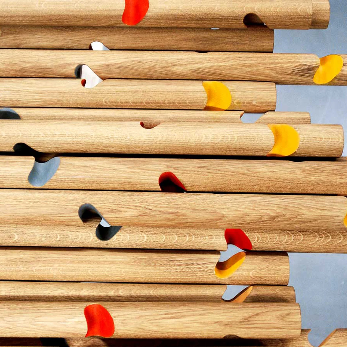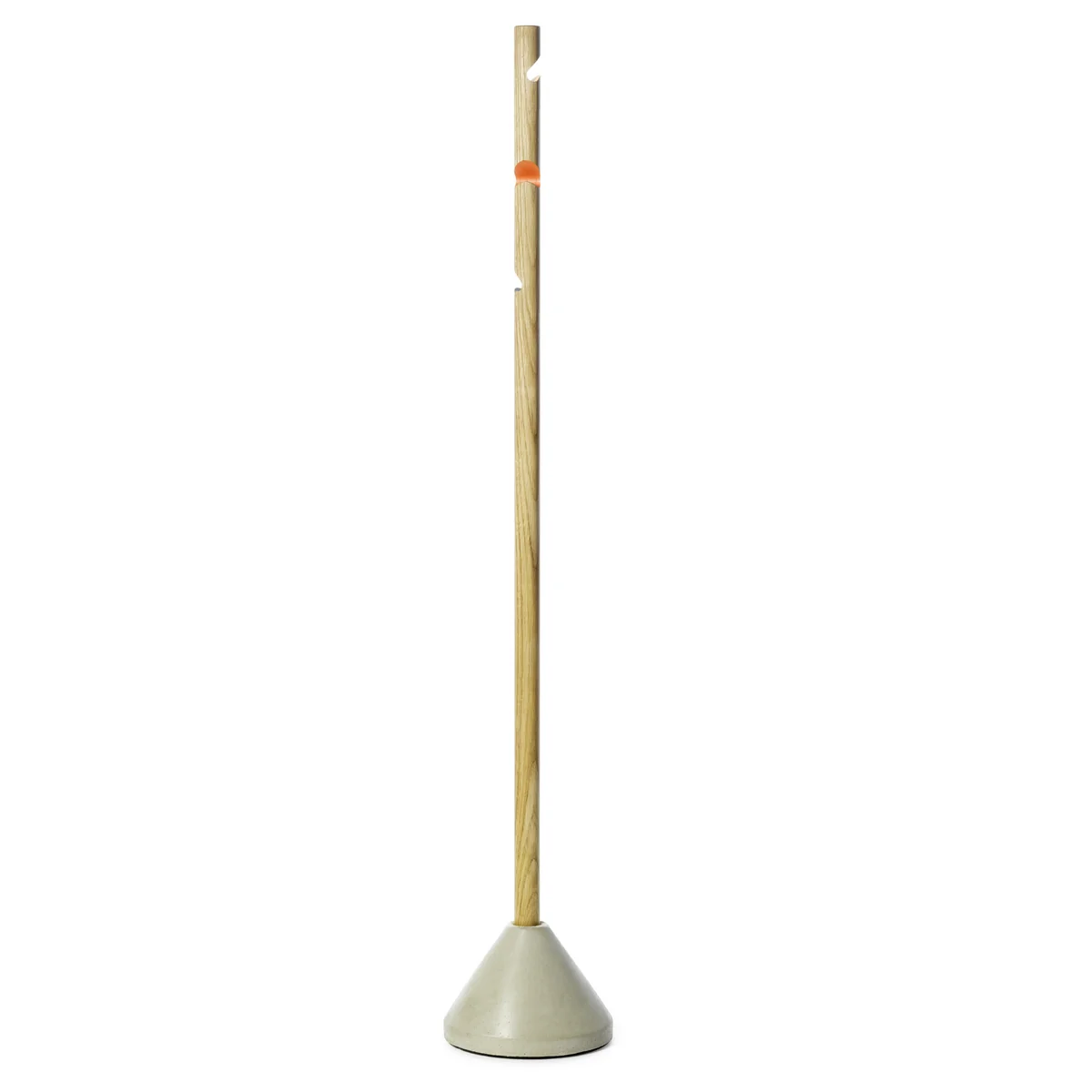 "Ich arbeite nicht gerne im Jacket, ab und zu brauche ich es aber und über die Stuhllehne will ich es nicht hängen. Deshalb habe ich den „Diener“ entworfen – ein Stab, ein Sockel, beides in bodenständigen Materialien: Beton und Eiche. Nicht mehr, nicht weniger allerdings mit einem sehr schönen Detail: Die drei Kerben werden mit drei verschiedenen Farben hervorgehoben.", so Tobias Grau über seine Idee von der Garderobe "Diener".