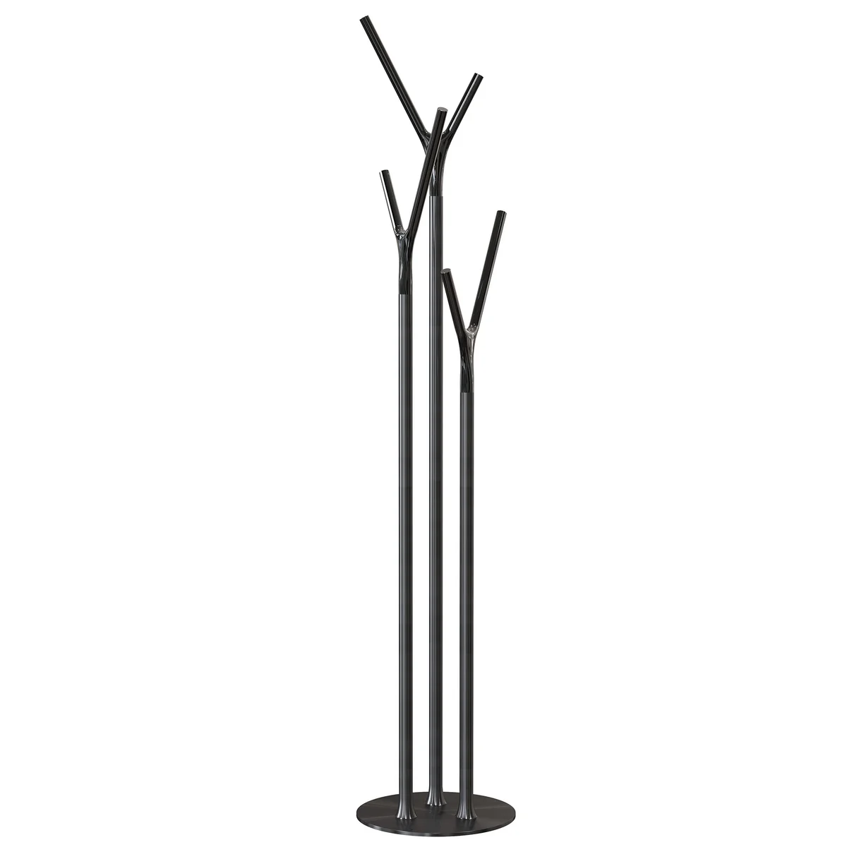 Frost bietet den Kleiderständer in verschiedenen Farbvarianten an. Während die verästelten Elemente der Kleiderstange immer aus glänzendem Edelstahl geliefert werden, kann für das Grundgerüst zwischen Grün, Weiß, Rot, Schwarz und einer matten Edelstahlvariante gewählt werden.