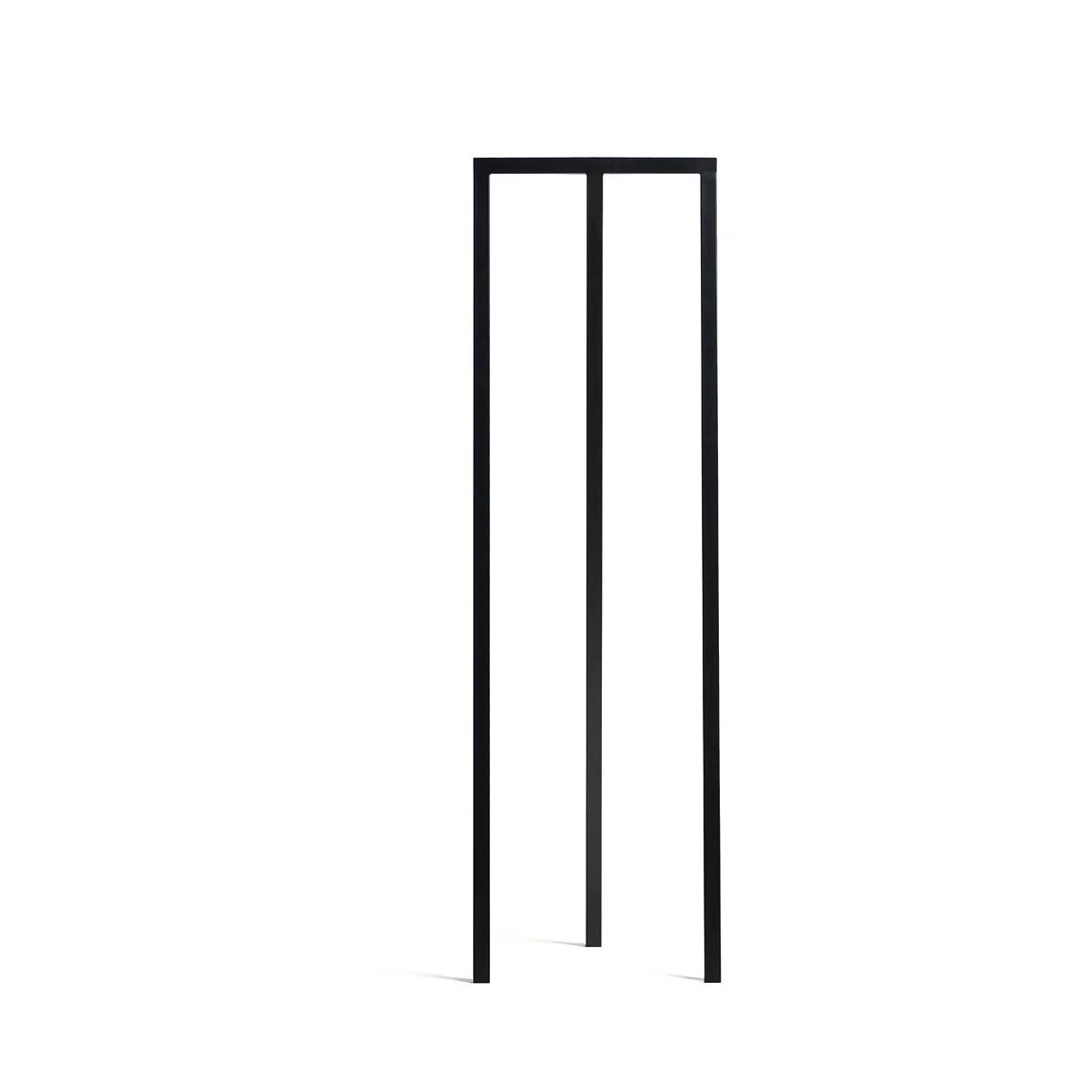 Die dreibeinige Standgarderobe ist eine Vereinfachung des Sägebocks, wie man ihn aus der Industrie kennt. Aus pulverbeschichtetem Stahl gefertigt ist sie in zwei verschiedenen Größen erhältlich. Die kleinere nennt sich Loop Hall, die größere Wardrobe. Auf dem Querbalken, der von den drei Beinen getragen wird, lassen sich mit einem Kleiderbügel problemlos Jacken, Hemden und andere Kleidung verstauen.