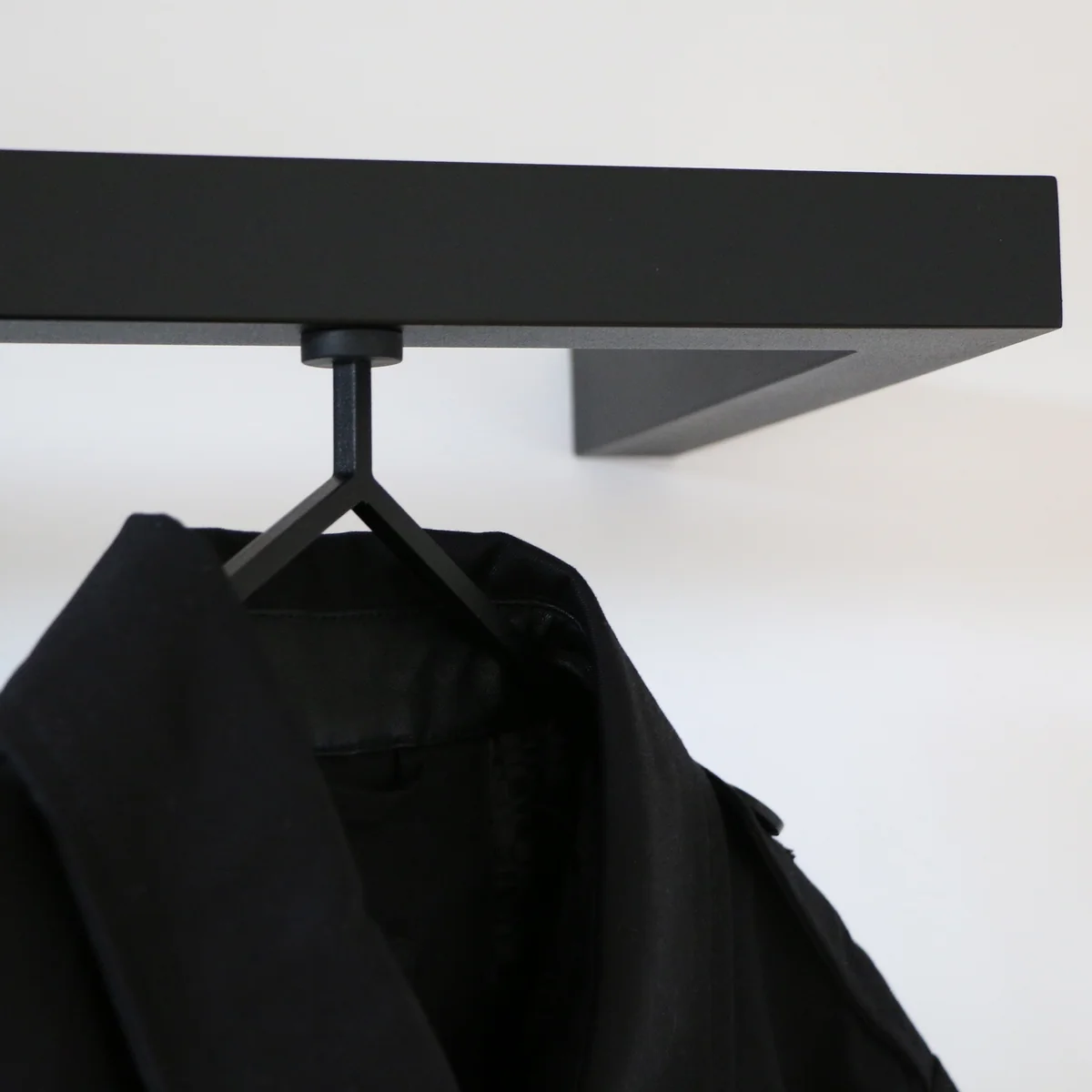 HangSys von Nichba Design ist in drei verschiedenen Längen erhältlich und passt sich so den individuellen Bedürfnissen an. Die Kleiderbügel sowie Glasplatten in den verschiedenen Längen, welche die Garderobe um eine praktische Ablagefläche erweitern sind separat erhältlich.