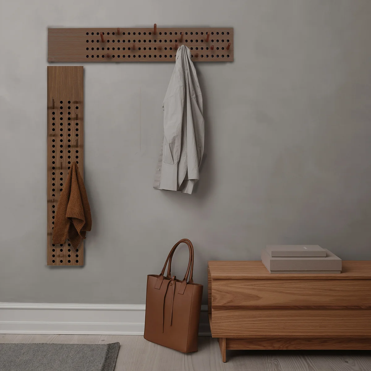 Bei der Gestaltung ist der Designer Sebastian Jørgensen voll und ganz dem Motto form follows function gefolgt. Nicht nur ermöglichen die Pins eine Nutzung nach den eigenen Bedürfnissen, die Scoreboard Garderobe lässt sich auch problemlos erweitern und mit weiteren Größen, sowie Hölzern kombinieren.