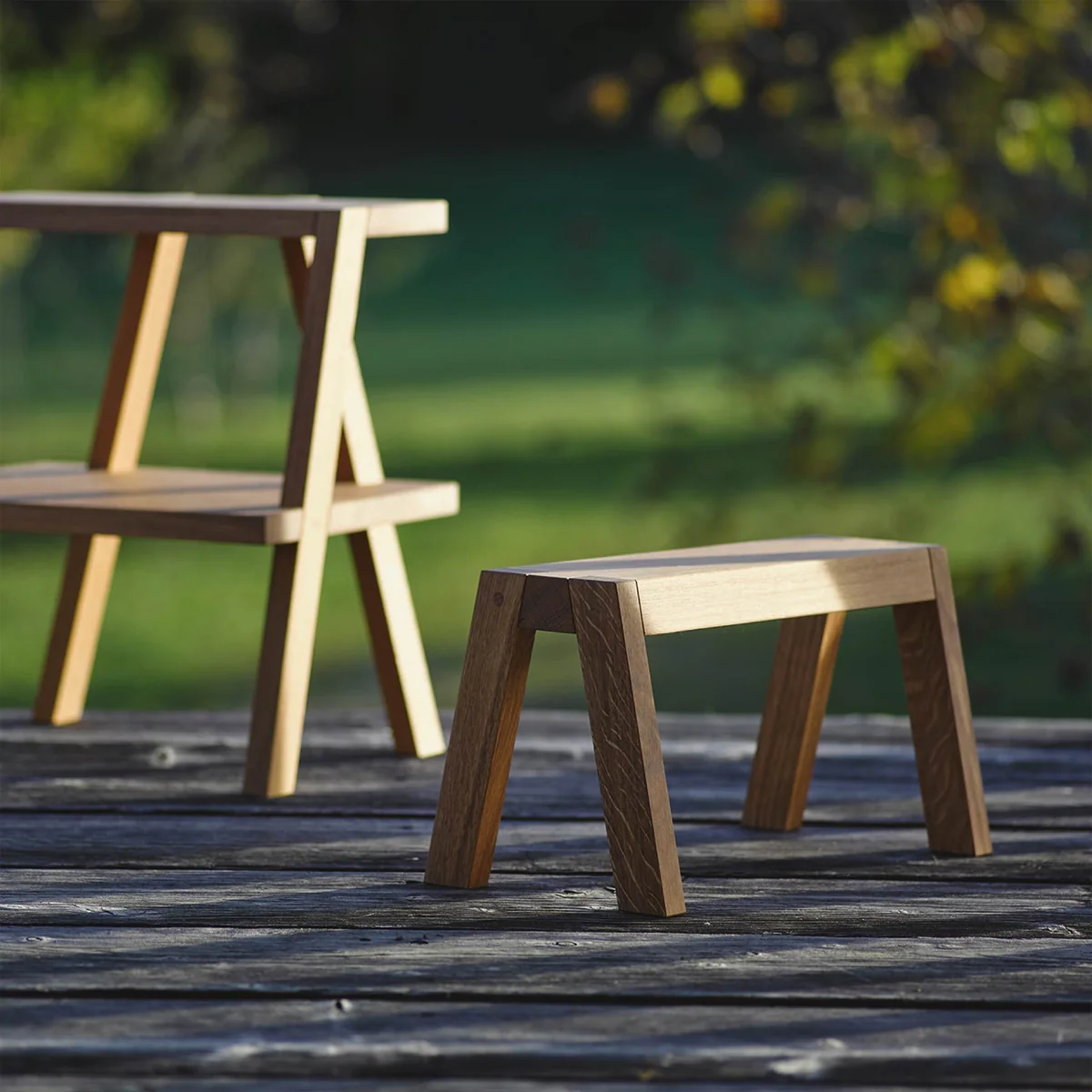 Gerry Kellermann entwarf den "Kleinen Bruder", der nicht nur bestens mit seinem großen Vorbild harmoniert, sondern auch in Kombination mit anderen Möbelstücken eine gute Figur macht. Aus geölter Eiche gefertigt eignet sich der Hocker von Auerberg zum Beispiel als Nachttisch, Beistelltisch, klassischer Tritthocker oder alternativer Beistelltisch.
