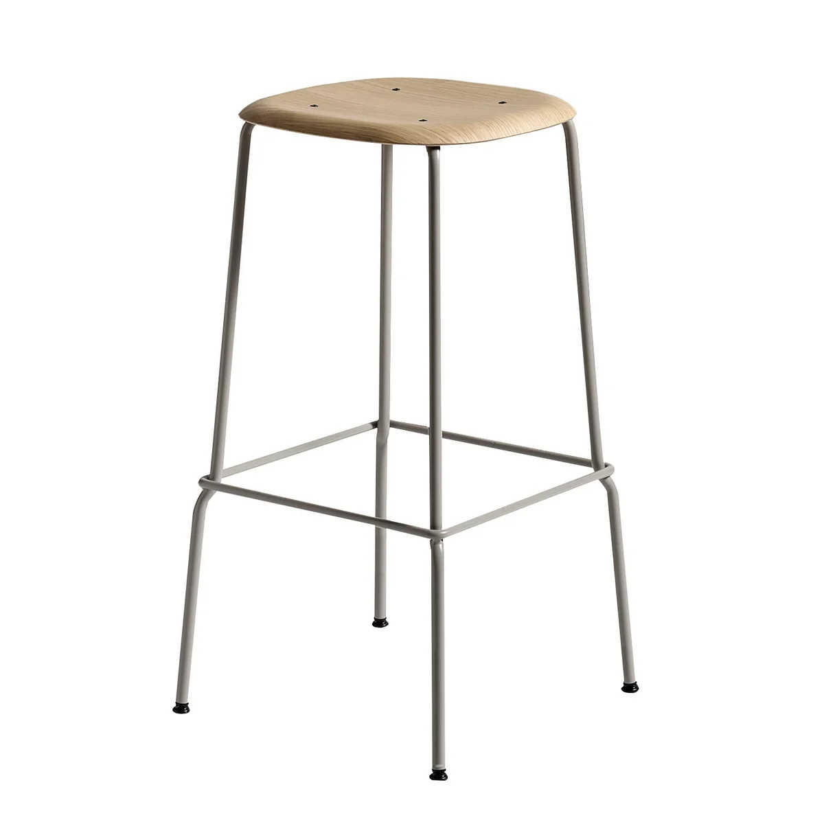 Der Soft Edge 80 High Hocker verbindet starke Kurven mit extremer Leichtigkeit. Er besticht durch sein modernes Design und die Kombination von Holz und Stahl.