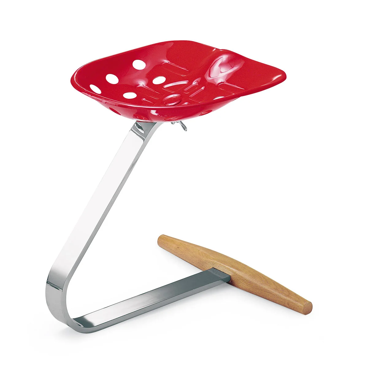 Jedes der Teile hat eine tragende Funktion und nichts an Mezzadro ist überflüssig. Gleichzeitig ist das Design des Hockers herausragend und innovativ und spannt sogar einen Bogen zur künstlerischen Skulptur.
