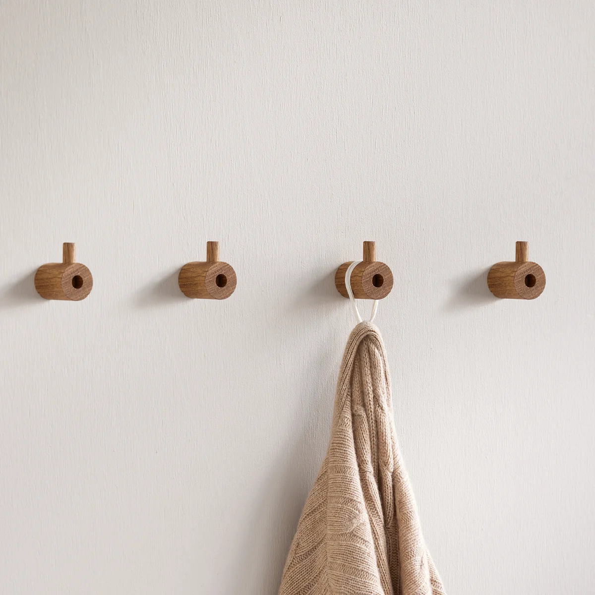 Die Holzwandhaken von Moebe formen kleine funktionale Details an jeder Wand. Mit der weichen und abgerundeten Form, sind die Wandhaken perfekt, um alle Jacken griffbereit zu haben. Hergestellt aus massivem Eichenholz, sind die Wandhaken einzeln sowie in Gruppen ein schöner, wohnlicher Blickfang in jedem Zimmer. Die Wandhaken können auch im Badezimmer oder in der Küche Verwendung finden, sodass die Handtücher oder Topflappen einen besonderen Platz erhalten. Die Wandhaken sind in unterschiedlichen Ausführungen erhältlich.