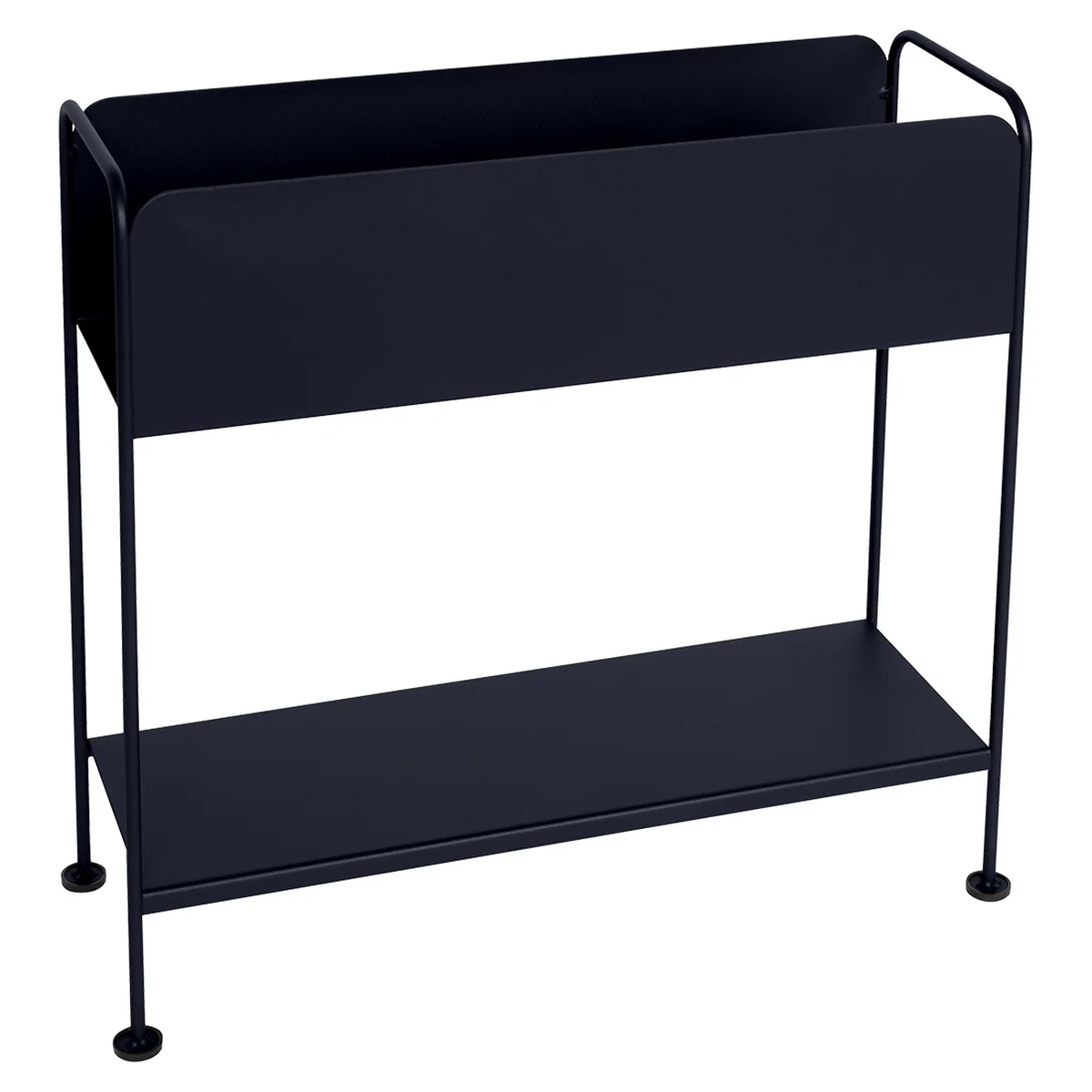 Der Picolino Konsolentisch von Fermob überzeugt durch das funktionale Design und der Leichtigkeit, die sowohl den Innenraum, als auch den Außenbereich zieren kann. Der Konsolentisch verfügt über ein Staufach und ein Regal, das vielseitig genutzt werden kann. Die Konsole kann verwendet werden, um Pflanzen auszustellen, aber auch Zeitschriften, Flaschen oder dekorative Objekte können dort ausgestellt werden. Die moderne Optik äußert sich in unterschiedlichen lebhaften Farben, die vielseitig in die bereits vorhandene Einrichtung eingefügt werden können.