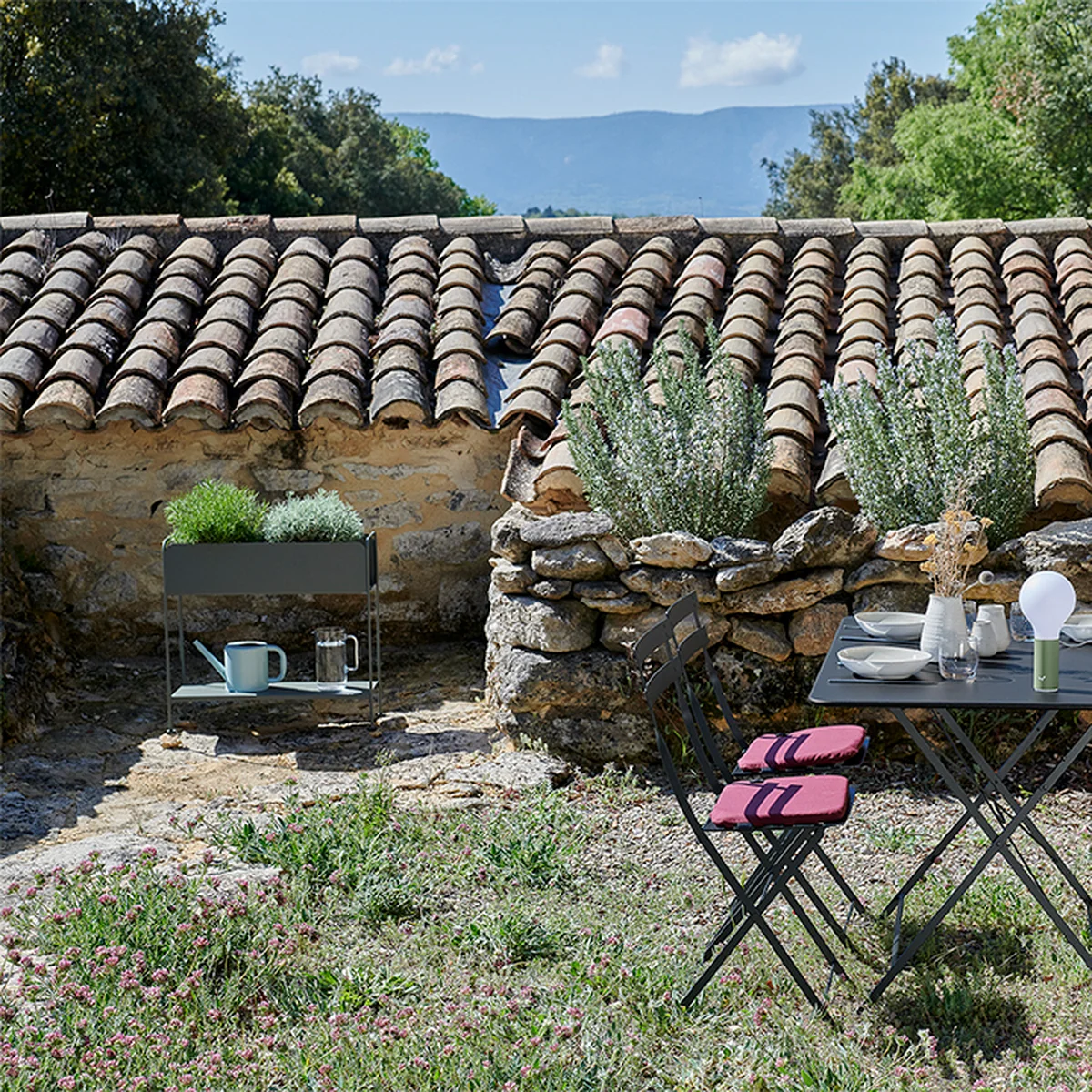 Der Picolino Konsolentisch von Fermob überzeugt durch das funktionale Design und der Leichtigkeit, die sowohl den Innenraum, als auch den Außenbereich zieren kann. Der Konsolentisch verfügt über ein Staufach und ein Regal, das vielseitig genutzt werden kann. Die Konsole kann verwendet werden, um Pflanzen auszustellen, aber auch Zeitschriften, Flaschen oder dekorative Objekte können dort ausgestellt werden. Die moderne Optik äußert sich in unterschiedlichen lebhaften Farben, die vielseitig in die bereits vorhandene Einrichtung eingefügt werden können.